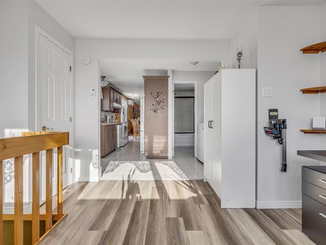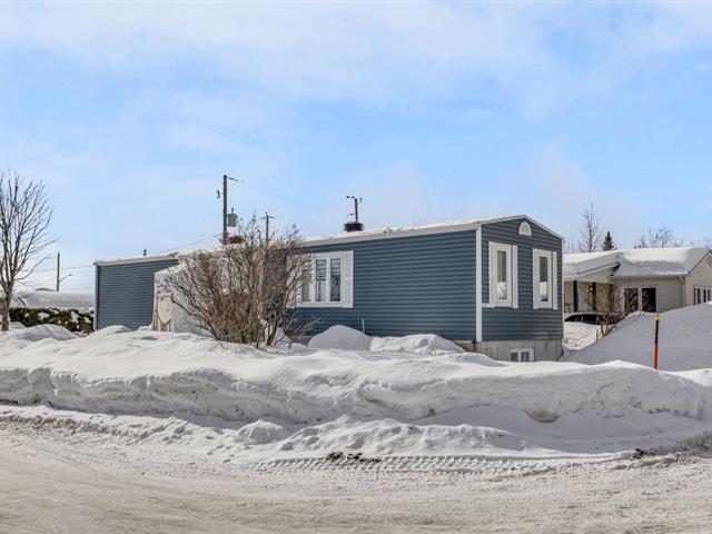 Impeccable maison modulaire avec sous-sol complet comprenant 3 chambres à coucher de très bonnes dimensions, en plus d'un espace bureau lumineux. Elle propose une grande aire ouverte avec planchers de bois, céramique dans l'entrée, cuisine et salle de bain. La cour a été minutieusement entretenue par l'unique propriétaire; haies matures, arbres, fleurs, balcon orienté plein soleil, remise avec électricité, entrée d'auto asphaltée. Située dans une rue familiale et tranquille, à 1,2 km d'une école primaire, de sentiers de marche en forêt et de tous les services. Une rareté à ce prix. Libre mi juillet ! (56562996)