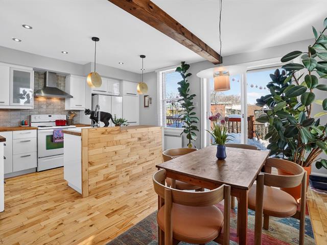 LUMINEUX DERNIER ÉTAGE BAIGNÉ DE LUMIÈRE! Cette unité de coin au dernier étage bénéficie de fenêtres sur trois côtés, offrant une luminosité exceptionnelle tout au long de la journée. Elle propose 2 chambres, ainsi qu'un bel espace de vie à aire ouverte regroupant salon, salle à manger et cuisine, parfait pour recevoir et profiter d'un quotidien convivial. Vous apprécierez le balcon avant, la terrasse arrière, ainsi qu'un espace de rangement au garage. En prime : l'exclusivité de la moitié du toit, offrant un potentiel incroyable pour aménager une terrasse privée avec vue dégagée. Belle copropriété indivise avec fonds de prévoyance. (43981598)