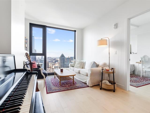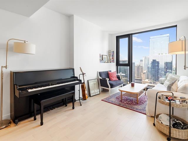Vivez au coeur du Quartier des Spectacles dans le prestigieux projet Maestria! Situé au 47e étage, ce condo lumineux d'une chambre offre une vue panoramique, une aire ouverte, la climatisation centrale et des finitions haut de gamme. Électroménagers inclus : frigo, cuisinière, lave-vaisselle, micro-ondes, laveuse et sécheuse. Locker privé inclus. Profitez d'un service de sécurité 24/7, salle de colis, piscine intérieure, sauna, gym, terrasses sur le toit et accès direct au métro Place-des-Arts. (40285853)