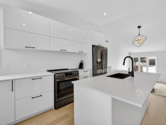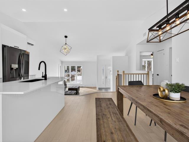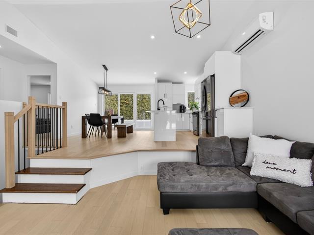 Bienvenue dans votre prochaine maison! Ce bungalow split level lumineux vous séduira par son plafond cathédrale de 12 pieds et ses nombreuses fenêtres. Cuisine modernisée avec immense îlot en quartz, idéale pour recevoir. Deux chambres au rez-de-chaussée et salle de bain rénovée. Sous-sol avec grande salle familiale, chambre supplémentaire et 2e salle de bain. Garage aménagé (époxy, thermopompe, salle d'eau). Plusieurs rénovations récentes. Secteur familial paisible près d'un parc. Clé en main. (45768077)