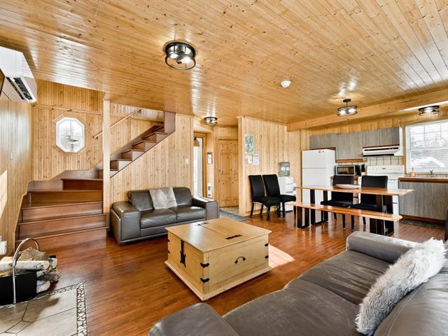 Lac Aylmer, Beaulac-Garthby. Joli chalet 4 saisons directement au bord de l'eau sur terrain plat et gazonné de 14 048 pi², 51,9 pieds de frontage. Emplacement privilégié face à une île procurant calme et protection naturelle contre le vent et les vagues. Espaces de vie chaleureux et lumineux avec 3 chambres à coucher, foyer au bois, thermopompe et spa pour un confort en toute saison. Le chalet est vendu entièrement meublé et équipé. 2 terrasses idéales pour relaxer et profiter de la vue, lac baignable et navigable parfait pour les sports nautiques. ***La location court terme permise et transférable*** Plusieurs locations déjà réservées $. TPS/TVQ doivent être ajoutées au prix demandé (56108519)