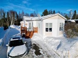 Charmante maison mobile entretenue avec grand soin, sise sur un beau terrain sans voisin arrière, vous offrant intimité et tranquillité. Elle propose 2 chambres à coucher ainsi qu'une aire de vie ouverte et lumineuse, idéale pour le quotidien. Une annexe pratique sert de hall d'entrée distinct, en plus d'une pièce bureau indépendante avec accès direct au patio. Garage détaché pour plus de commodité. Située à deux pas d'une garderie et à proximité des écoles et des services, elle allie emplacement stratégique et confort. Une belle opportunité à saisir!!! (51789805)