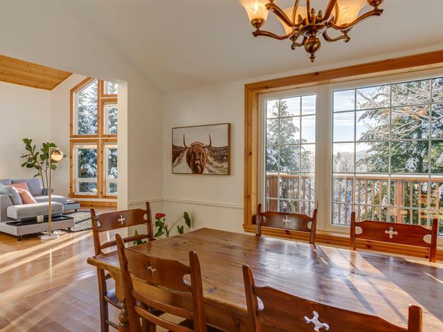 Magnifique Viceroy entretenue avec soin située sur un terrain de 4.1 acres avec étang, bien éloignée du voisinage. Offrant une fenestration généreuse, orientée sud-ouest permettant une vue sur les montagnes environnantes et les couchers de soleil. 4 chambres, dont une suite des maîtres à l'étage, 3 s. de bain complètes, grand salon avec poêle à bois & plafond cathédrale, planchers de bois franc, thermopompe centrale et planchers chauffants, garage intégré (actuellement converti en salle familiale). À proximité, se trouve actuellement le spa Bolton, 25 min. d'Owl's Head, des sentiers de la vallée Ruiter et du parc national du Mt Orford. (44707337)