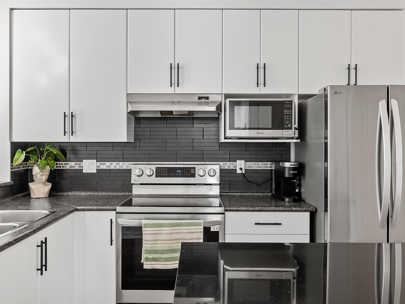 Machine à laver, Sécheuse, Réfrigérateur, Cuisinière, Lave-vaisselle, Ouvre-porte de garage, Aspirateur central préinstallé