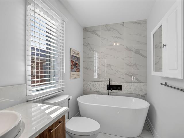 Moderne et lumineuse maison de ville (2017) à distance de marche de la Promenade Fleury, nichée dans un secteur paisible, elle propose 4 chambres (dont une au sous-sol), 2 salles de bain et 1 salle d'eau, un garage et une jolie cour clôturée. Emplacement idéal, à proximité des parcs de l'Île-de-la-Visitation et Frédéric-Back (41585006)