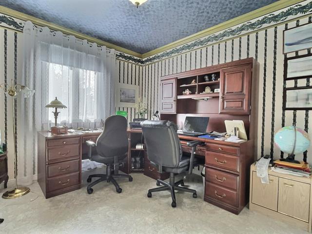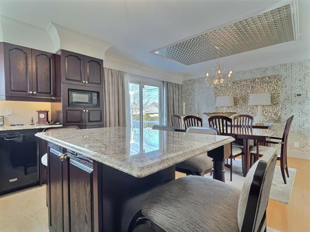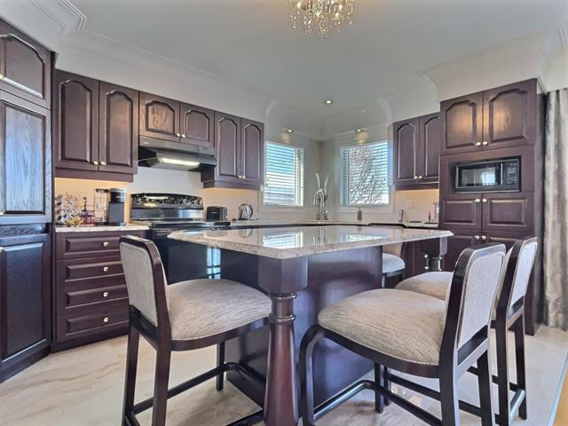 Vous serez charmé par le soin apporté aux détails de chaque pièce du rez-de-chaussée. Le salon, doté d'un plafond en toile tendue, offre une impression de hauteur et de grandeur remarquable. La cuisine est rehaussée par de superbes comptoirs en granit, tandis que les planchers de bois franc sont dans un état impeccable. À l'extérieur, la toiture en bardeaux d'aluminium et la cour en pavé uni confèrent une fière allure à la demeure. Le terrain, soigneusement entretenu, est entièrement bordé de haies de cèdres. (56526480)