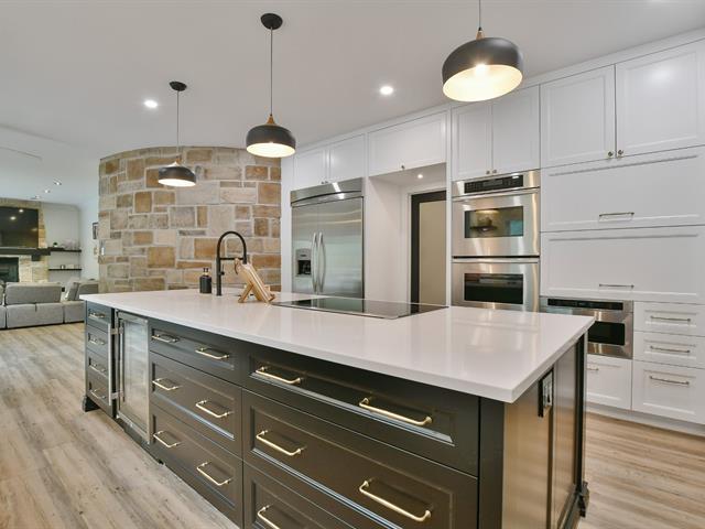 Située dans un secteur paisible et recherché, cette propriété à étage offre 5 chambres, dont 4 à l'étage et 1 au rez-de-chaussée, ainsi que 3 salles de bain complètes et une salle d'eau. La cuisine rénovée en 2024 se distingue par son vaste îlot et son garde-manger walk-in. Vous y trouverez aussi une salle de cinéma maison et une pièce de style cigar room, idéale pour recevoir. La cour aménagée propose une piscine creusée, un pool house et de grands espaces de détente. Plusieurs rénovations importantes ont été effectuées, dont la piscine (2017), le pool house (2020) et l'agrandissement de la salle à manger et du cigar room (2020). (46071408)