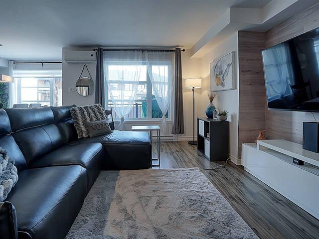 Bienvenue dans ce superbe condo style moderne, construction 2014, espaces communs a aire ouverte, cuisine avec beaucoup de comptoir et armoire, grande chambre des maîtres avec walk-in, 2e chambre de bonne dimension, salle de bain au gout du jour, salle de lavage fermée, grande terrasse intime, 2 espaces de stationnement, 1 cabanon. Le petit domaine est charmant, tranquille et convivial. Vue sur le petit boisé, a proximité des services. (55907764)