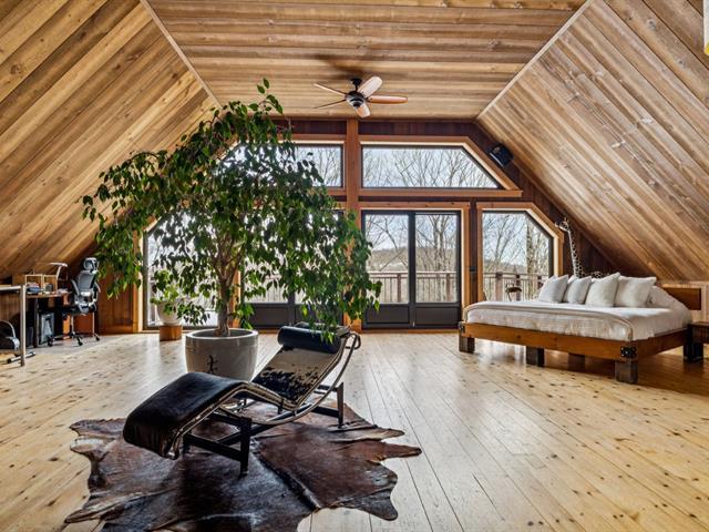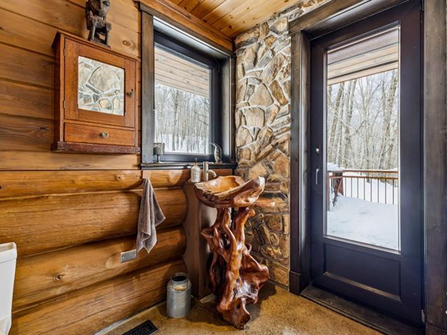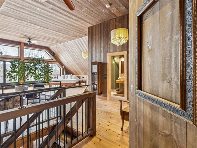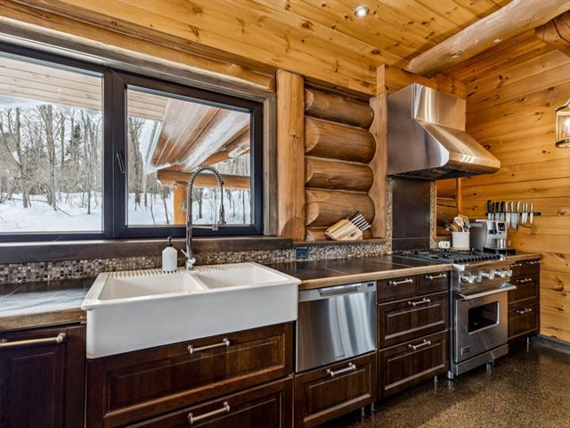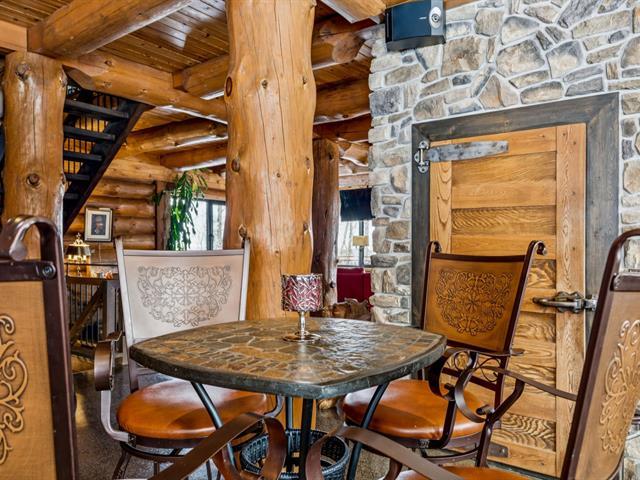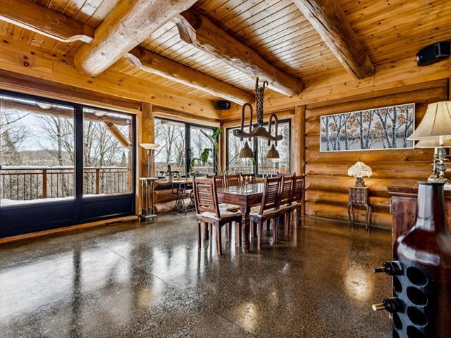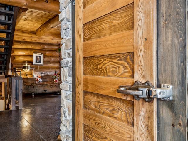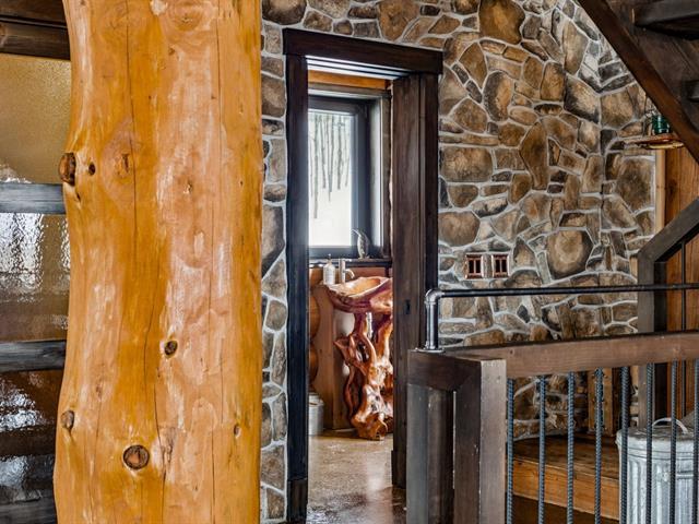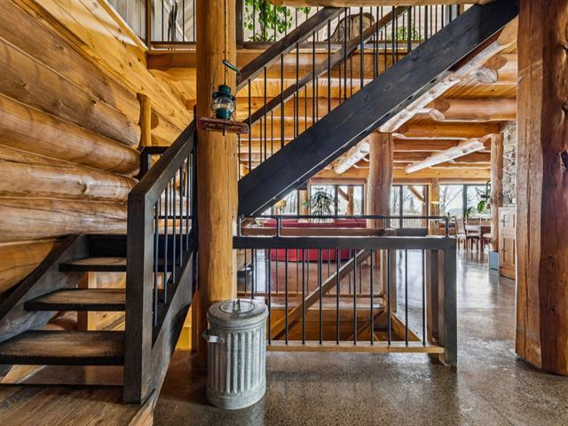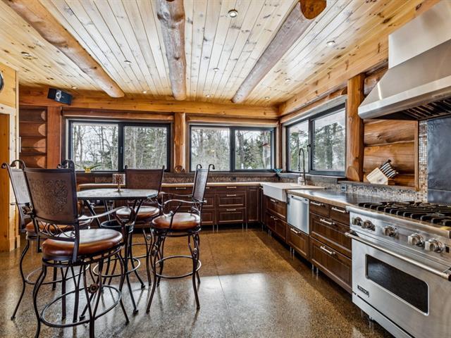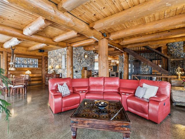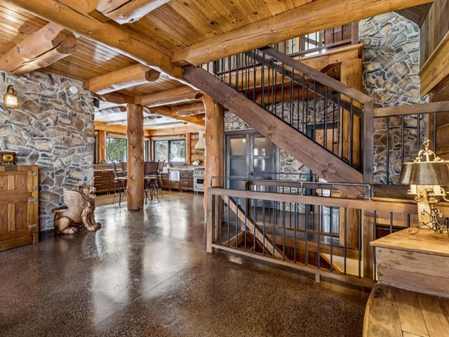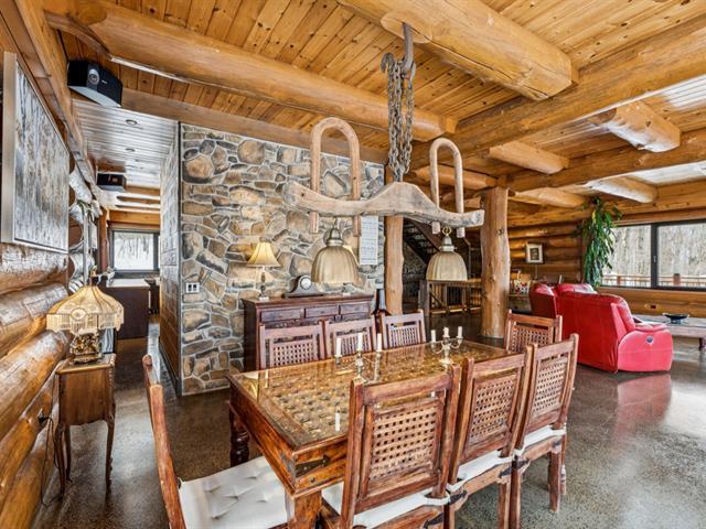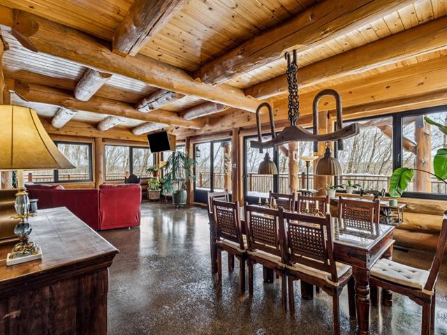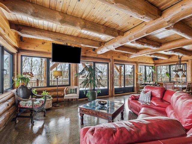 Masterpiece - la vie canadienne à son meilleur. Construite en 2014, cette maison en bois rond autonome est implantée sur 20 acres privés - offrant une intimité absolue tout en étant à seulement 5 minutes de la ville et de l'autoroute 15. Un domaine unique et paisible, véritable terrain de jeu privé. Conçue avec un choix réfléchi de matériaux haut de gamme et des caractéristiques distinctives, la propriété séduit à chaque détour - de l'impressionnante porte d'entrée principale ronde au charmant et unique réfrigérateur de type « walk-in ». Ici, vivre en harmonie avec la nature est l'essence même du mode de vie. (53892570)