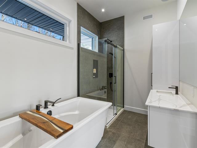 Cette superbe maison à Sainte-Agathe des Monts allie charme et confort. Avec ses plafonds de 10 pieds, ses portes intérieures de 8 pieds et son revêtement extérieur en bois de pin, elle offre un cadre de vie élégant et chaleureux. L'intérieur lumineux est équipé d'un système de ventilation à air pulsé incluant une thermopompe, un humidificateur et un échangeur d'air, assurant un climat intérieur optimal en toute saison. Le cellier, les comptoirs de Quartz ainsi que les toilettes intelligentes ajoutent des touches de luxe supplémentaires. Vous apprécierez également le plancher chauffant de la terrasse ainsi que son spa et foyer extérieur. (40822415)