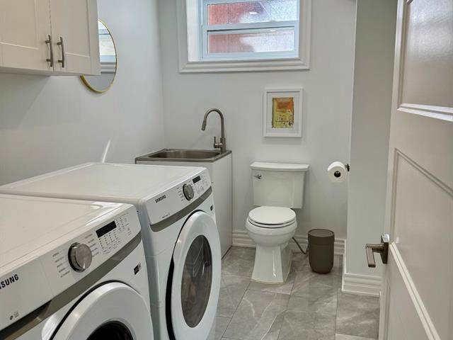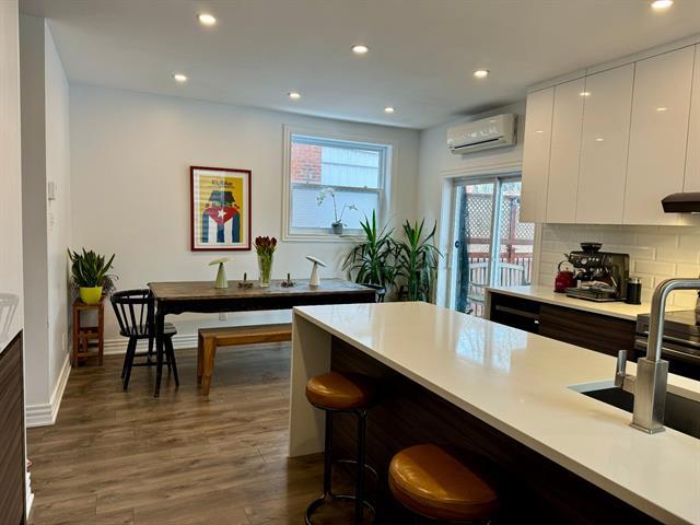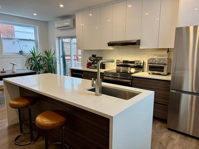 Magnifique logement au rez-de-chaussée d'un duplex, entièrement rénové, avec garage intérieur, idéalement situé au coeur du Village Monkland à NDG. Cette résidence familiale de qualité exécutive offre trois chambres à coucher et deux salles de bains au niveau principal, une cuisine moderne avec grand îlot et coin repas, ainsi qu'un sous-sol entièrement aménagé comprenant une salle familiale, une quatrième chambre, une salle d'eau avec espace buanderie, du rangement et un accès direct au garage. Finitions haut de gamme et accès à une cour arrière. Occupation possible en juin. (44546133)