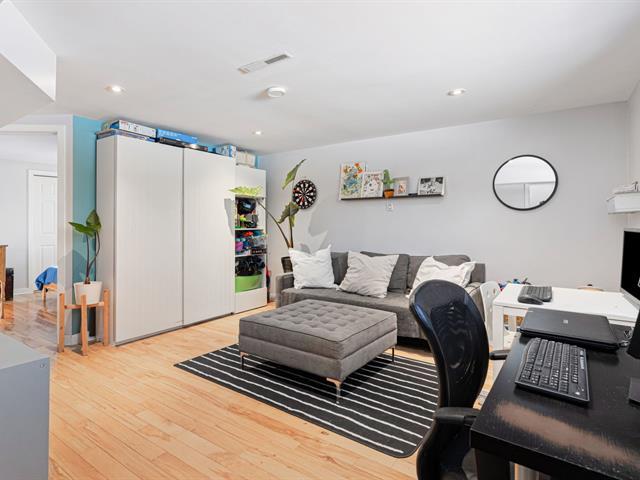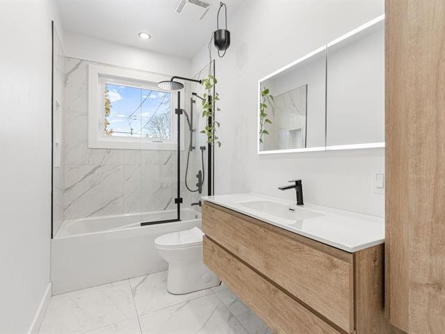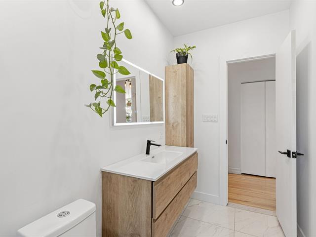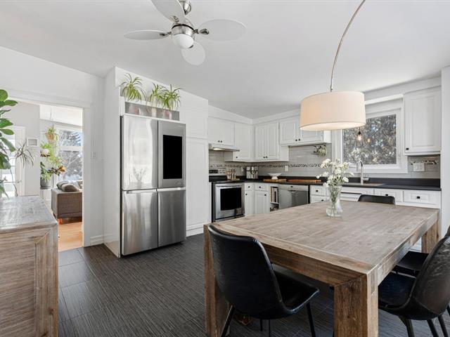 SUPERBE PLAIN-PIED AVEC GARAGE INTÉGRÉ! Propriété lumineuse et impeccablement entretenue offrant 5 chambres, dont 3 au rez-de-chaussée un atout rare et recherché! 2 salles de bain complètes rénovées! Aire de vie chaleureuse baignée de lumière grâce à une fenestration surdimensionnée. Cuisine au look actuel avec dosseret de céramique et abondant rangement. Sous-sol entièrement aménagé avec vaste salle familiale et grande salle de lavage indépendante. Cour intime avec piscine hors terre chauffée. Garage intégré et 3 espaces de stationnement extérieurs. Système central au gaz naturel et climatiseur central. Emplacement exceptionnel près de tout! (45782673)