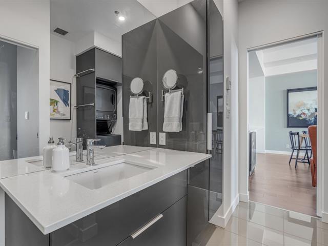 M dans Montcalm, magnifique condo situé au 4ème et dernier étage de l'immeuble, plafond de 11 pieds avec fenestration supérieure offrant une magnifique vue sur les montagnes, chambre avec walk-in, espace bureau supplémentaire, plancher chauffant dans la salle de bain, belle cuisine avec comptoir de quartz, 2 stationnements intérieurs, plusieurs inclusions, superbe copropriété offrant une terrasse sur le toit avec spa de nage, localisation stratégique en plein coeur de la Ville à pied de tous les services. (43477190)