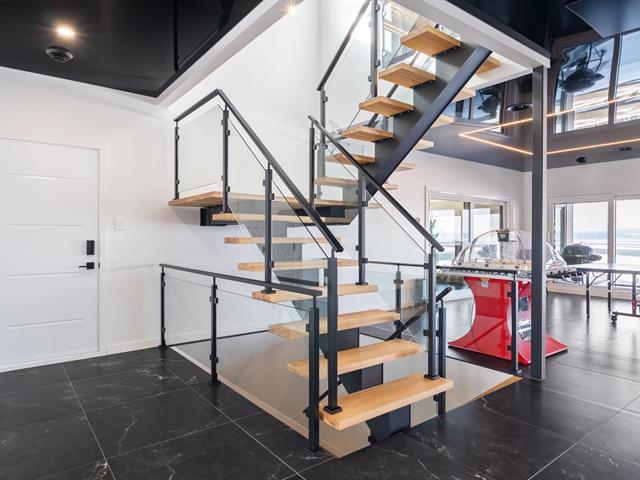 vidéo ==> https://youtu.be/xsI2D6sVaZ8?si=-dNgeM-YwYC2n3Tq Bordé par le Fleuve Saint-Laurent avec la vue la plus spectaculaire qu'il est possible d'avoir! Ce chef-d'oeuvre architectural alliant luxe et technologie. Dotée d'un système de domotique avancé, elle offre un contrôle intégral de l'éclairage, chauffage et de la musique, garantissant un confort optimal à ses résidents. Les planchers chauffants et le système de climatisation central créent une atmosphère accueillante et chaleureuse. Elle dispose de 4 chambres, 1 grand bureau, d'une salle de spa, d'une salle de jeux, 2 coins foyer, et d'une cuisine extérieure de chef. (58140609)