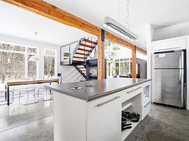 À 20 minutes du Parc National du Mont-Orford et près du village d'Eastman, cette propriété propose un équilibre entre confort et nature. Implantée sur un terrain boisé de 54 000 pi², elle offre 2 chambres, une cuisine fonctionnelle, une véranda 3 saisons, un garage attaché et du rangement. Son plafond cathédrale de 14 pieds et sa fenestration abondante maximisent la luminosité. La terrasse sur le toit du garage, avec muret vitré, ajoute un espace extérieur agréable et bien intégré à l'environnement. (42126834)