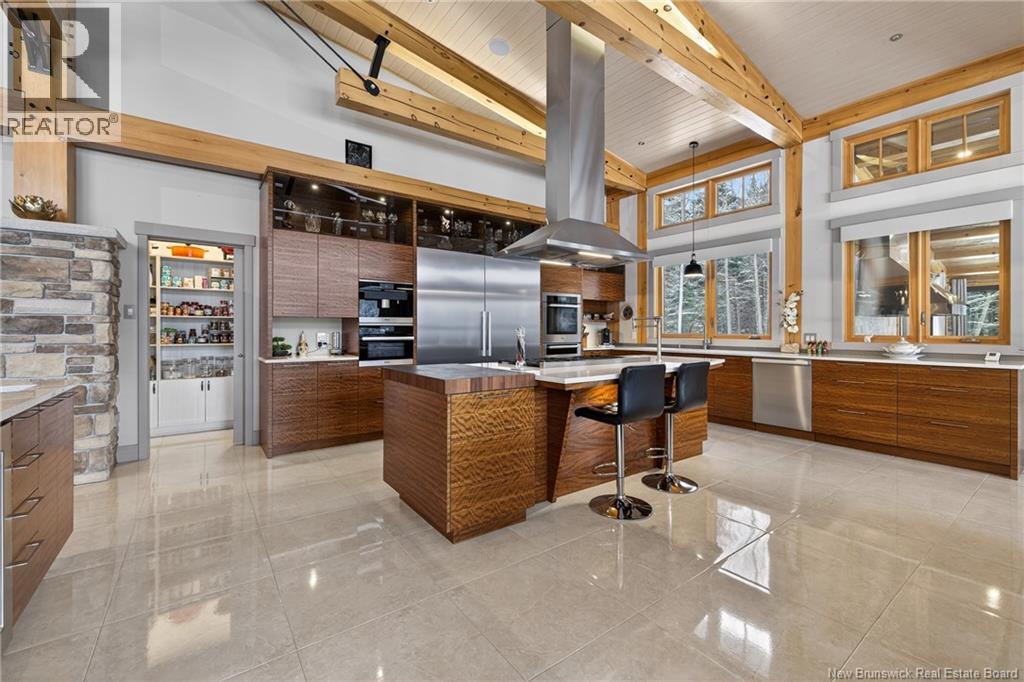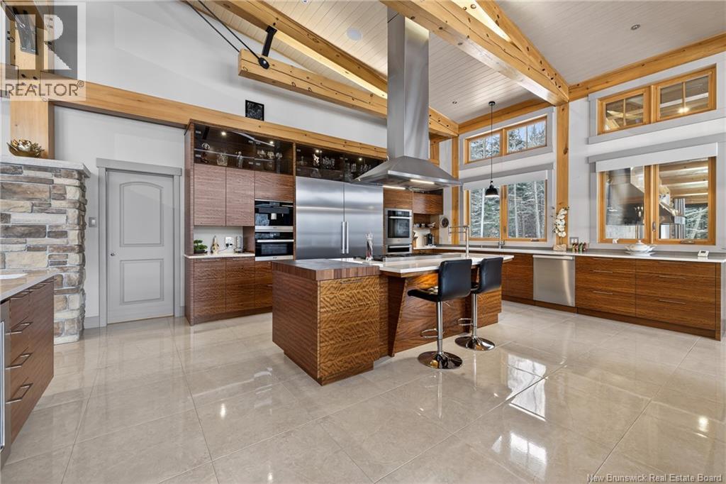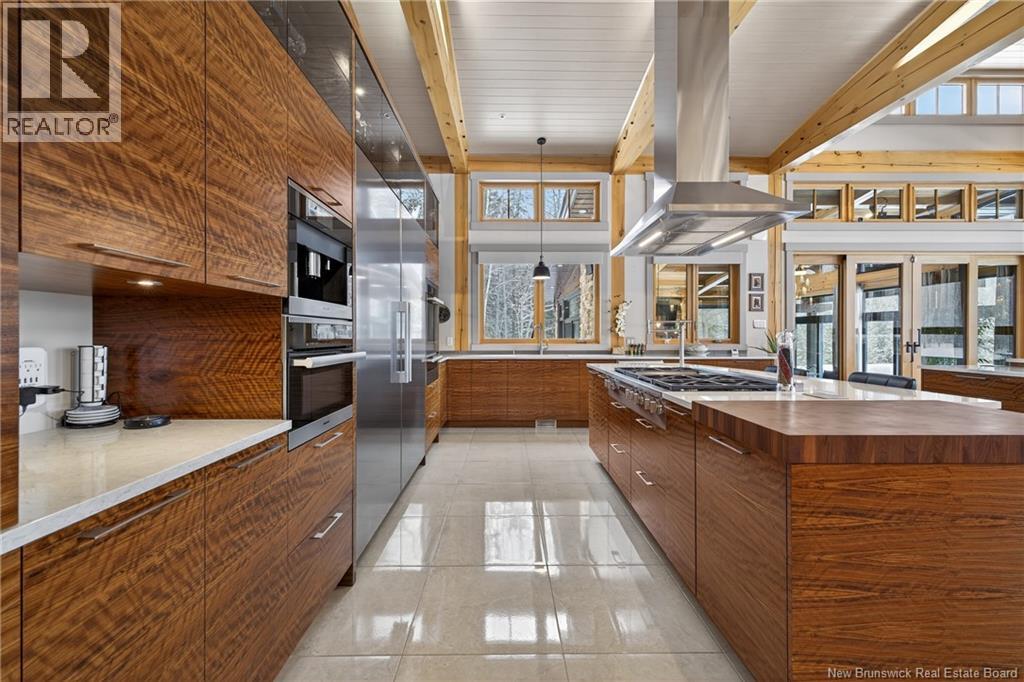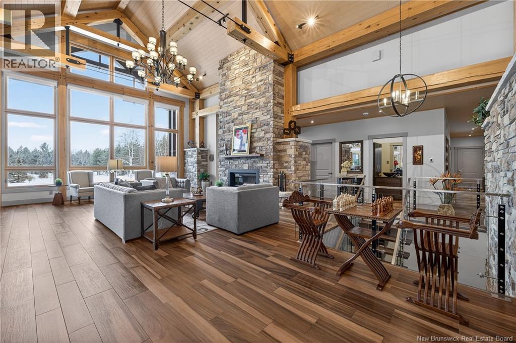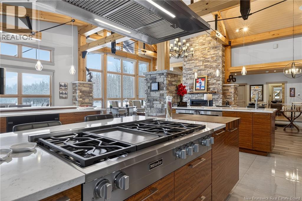 Implantée sur 20 acres boisés, cette résidence dexception offre une intimité remarquable et une tranquillité rare. Construction timber frame avec plafond cathédrale denviron 23 pieds et poutres massives, créant un espace chaleureux et convivial, idéal pour recevoir. Laire ouverte réunit cuisine, salle à manger et salon autour dun mur accent en pierre et dun foyer central, tandis que trois foyers au total ajoutent confort et ambiance enveloppante durant lhiver. Cuisine haut de gamme avec armoires sur mesure en bois massif Mozambique, trois îlots généreux, comptoirs en quartz, butcher block intégré et électroménagers Miele et Marvel. Deux suites complètes avec salles de bain privées incluant bain autoportant et douche vitrée indépendante. Bureau spacieux pour le télétravail et salle de cinéma maison pour se détendre pleinement. Véranda quatre saisons idéale pour recevoir autour du barbecue intégré et partager des moments privilégiés. Planchers chauffants dans toute la résidence, système domotique Control4, stores motorisés, caméras, fibre optique, génératrice 22 kW au propane et service électrique 400 AMP. Garage triple attaché et garage double détaché complètent ce domaine rare où confort, technologie et qualité de vie sunissent. (29539908)