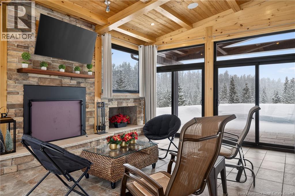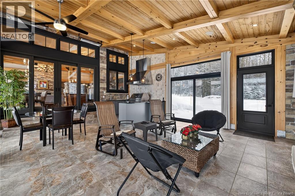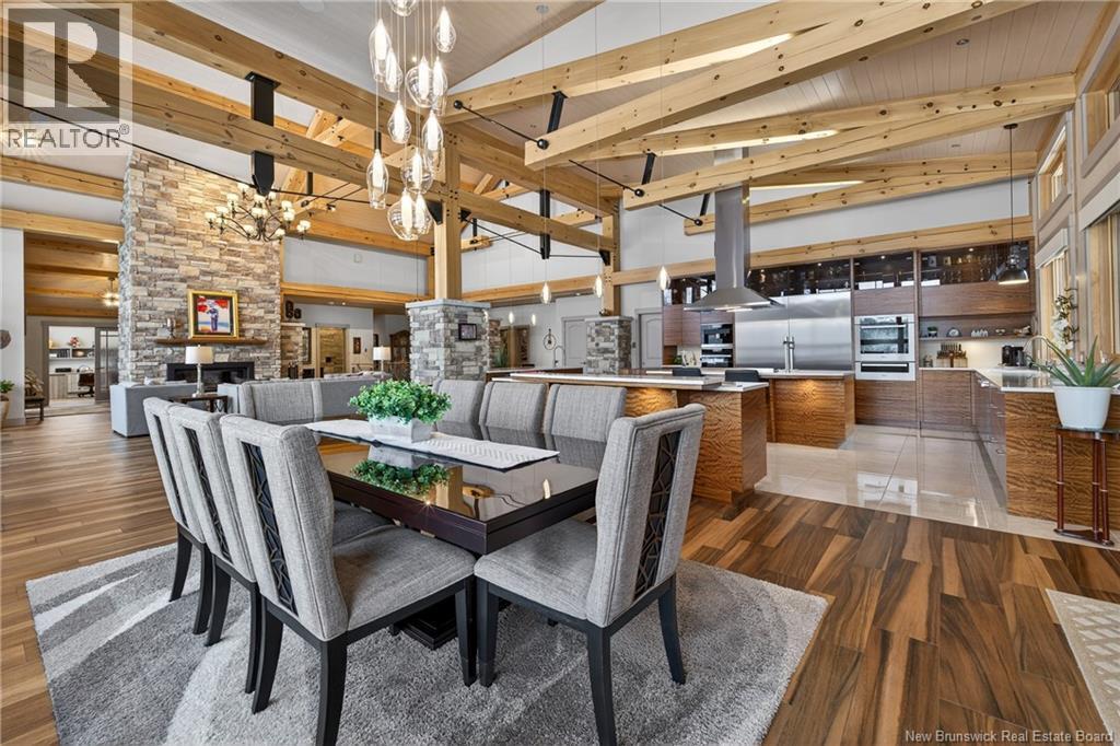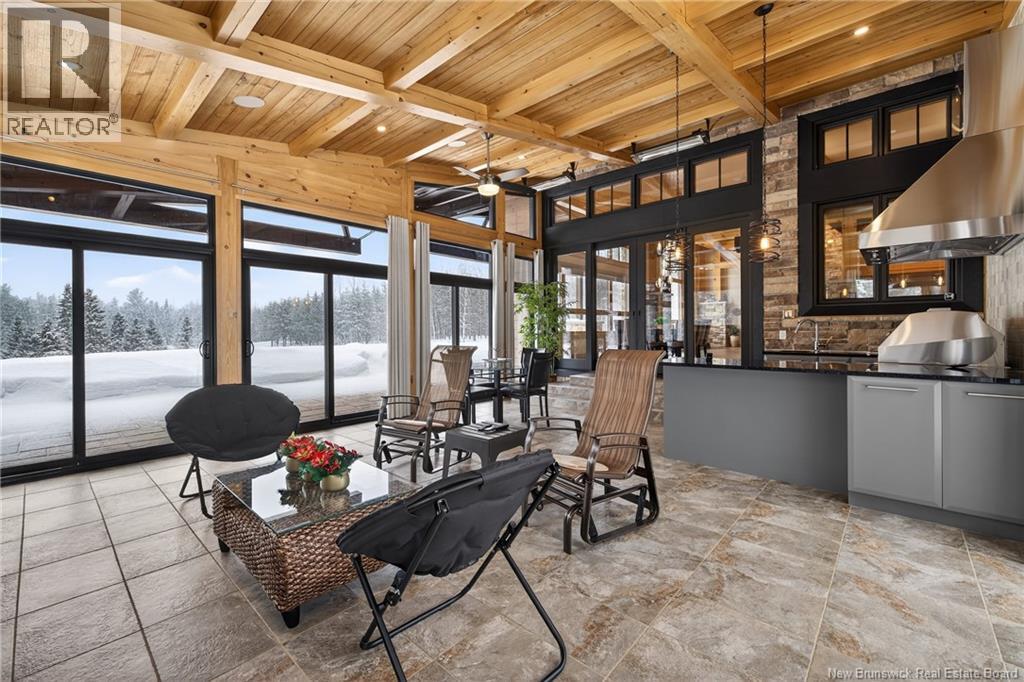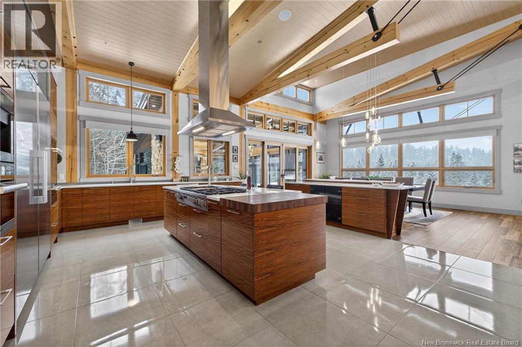 Implantée sur 20 acres boisés, cette résidence dexception offre une intimité remarquable et une tranquillité rare. Construction timber frame avec plafond cathédrale denviron 23 pieds et poutres massives, créant un espace chaleureux et convivial, idéal pour recevoir. Laire ouverte réunit cuisine, salle à manger et salon autour dun mur accent en pierre et dun foyer central, tandis que trois foyers au total ajoutent confort et ambiance enveloppante durant lhiver. Cuisine haut de gamme avec armoires sur mesure en bois massif Mozambique, trois îlots généreux, comptoirs en quartz, butcher block intégré et électroménagers Miele et Marvel. Deux suites complètes avec salles de bain privées incluant bain autoportant et douche vitrée indépendante. Bureau spacieux pour le télétravail et salle de cinéma maison pour se détendre pleinement. Véranda quatre saisons idéale pour recevoir autour du barbecue intégré et partager des moments privilégiés. Planchers chauffants dans toute la résidence, système domotique Control4, stores motorisés, caméras, fibre optique, génératrice 22 kW au propane et service électrique 400 AMP. Garage triple attaché et garage double détaché complètent ce domaine rare où confort, technologie et qualité de vie sunissent. (29539908)
