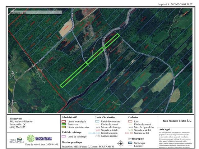 Terre à bois de 84300 m.c ou 20.83 acres, zoné verte, offrant un excellent rapport qualité/prix. Idéale pour les amateurs de plein air, elle est traversée par une rivière et propice à la pêche. Elle se trouve dans un secteur recherché pour la chasse au gros gibier. Une érablière d'environ 800 entailles permet aussi de vivre l'expérience authentique de la cabane à sucre et de la production de sirop d'érable. Une occasion rare d'acquérir une terre polyvalente et abordable. (39713144)