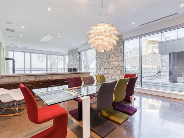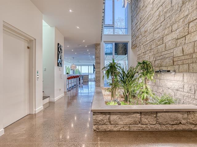 Ce chef-d'oeuvre de 5869 pi/c méticuleusement construit en structure d'acier avec plancher de béton, pierre naturelle, fenestration impressionnante en verre triple commercial / aluminium et matériaux de finition supérieure vous offre : une vue imprenable sur la rivière des Outaouais, de grandes Terraces dans un environnement très privées avec exposition du soleil au sud, une immense cuisine moderne digne d'un grand chef, ascenseur, piscine en acier inoxydable, appartement avec Terrace et spa au 3e étage, 4 salles de bain, 4 chambres à coucher dont la somptueuse chambre des maîtres et ses 2 grand walk-ins, foyer en pierre naturelle double face (54025643)