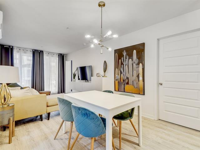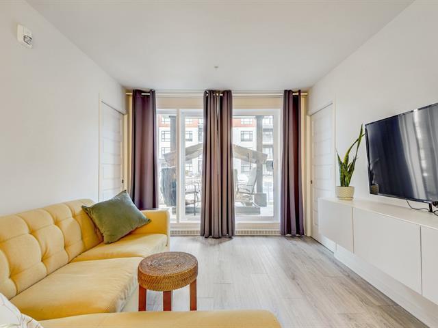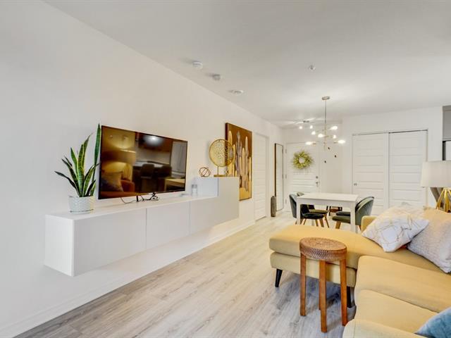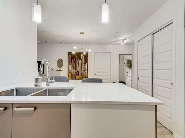 Magnifique condo rez-de-jardin dans un secteur recherché. Cette unité de 2 chambres et 1 salle de bain offre un design à aire ouverte, lumineux et moderne. Le salon et la salle à manger bénéficient d'une grande fenestration, laissant entrer la lumière naturelle. La cuisine est équipée d'un îlot central et de comptoirs en quartz. La chambre principale avec penderie est baignée de lumière. Salle de bain moderne avec douche vitrée et bain séparé. Profitez aussi d'une piscine, d'un gym, d'un BBQ à la piscine et de 2 stationnements, dont un dans un garage chauffé. Idéalement situé près des autoroutes 20, 30, 40. (50731880)