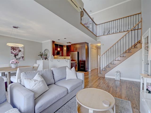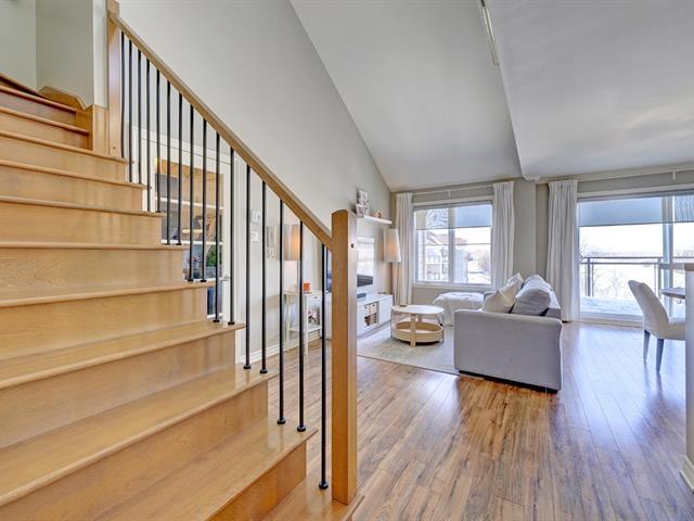 ** Nouveauté avec mezzanine, 2 chambres, garage + stationnement extérieur** magnifique vue sur le fleuve. Condo clé en main, impeccable et entretenu avec soin. Hall d'entrée fermé avec porte vitrée. Salon spacieux et lumineux avec plafond cathédrale. Salle à manger et cuisine fonctionnelle avec armoires jusqu'au plafond. Mezzanine avec porte-fenêtre et grande terrasse-balcon, escalier en bois et fer forgé. Chambre principale avec walk-in, 2e chambre avec sortie extérieure. Salle de lavage séparée. Garage chauffé + stationnement extérieur. Piscine creusée. Situé au bord du fleuve Saint-Laurent. Proximité autoroutes + transport en commun. (55992601)