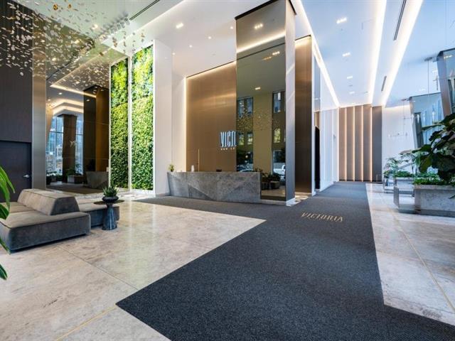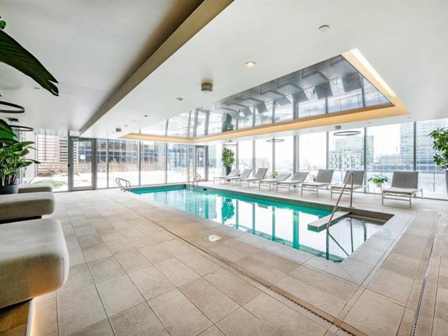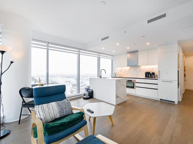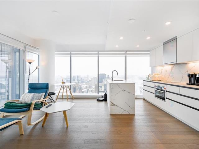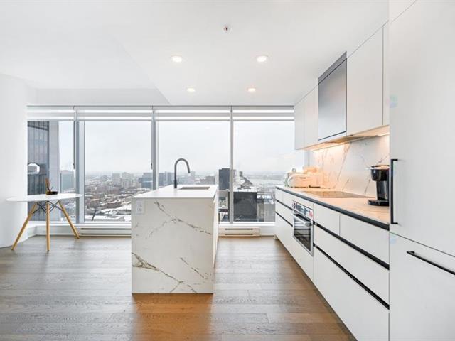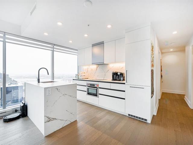 Unité d'angle lumineuse au 38e étage avec fenêtres du plancher au plafond offrant des vues panoramiques sur la ville et une luminosité naturelle exceptionnelle. Espace de vie ouvert avec une cuisine moderne incluant un îlot, deux chambres confortables et 1+1 salles de bain au design élégant. Grand balcon qui prolonge l'espace de vie. Un stationnement intérieur inclus. Commodités haut de gamme : terrasses, piscines intérieure et extérieure, gym, sauna et service de concierge 24/7. Au coeur du Vieux-Montréal, à quelques pas de la station de métro Square-Victoria--OACI, de la Gare Centrale et des meilleurs restaurants. (47064870)