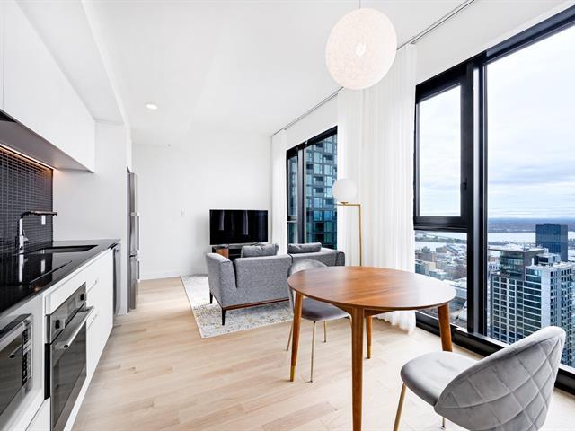 Unité de coin spectaculaire au 42e étage du prestigieux Maestria, offrant une vue panoramique aérienne à 270° sur le fleuve, le centre-ville et l'horizon montréalais. Entièrement fenestré, le condo est baigné de lumière du lever au coucher du soleil et bénéficie de l'un des emplacements les plus prisés de la tour pour son ensoleillement et ses vues incomparables. Offert entièrement meublé et équipé, clé en main. Accès à des aires communes exceptionnelles : piscines int./ext., spa nordique, sauna, hammam, gym complet, lounges, terrasses, espaces de travail, sécurité et concierge 24 h. (54876780)