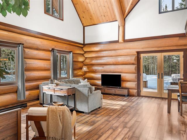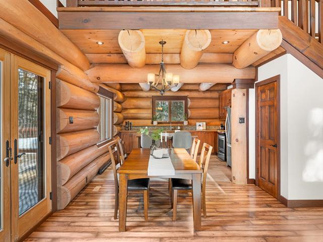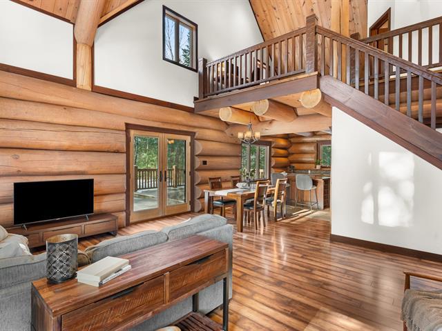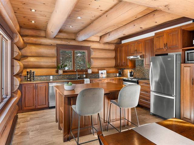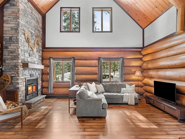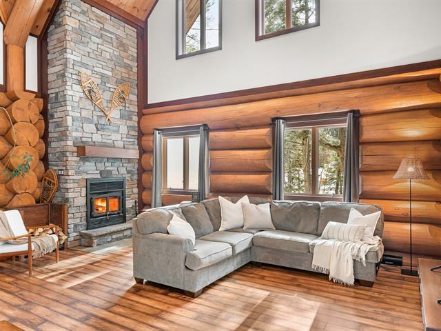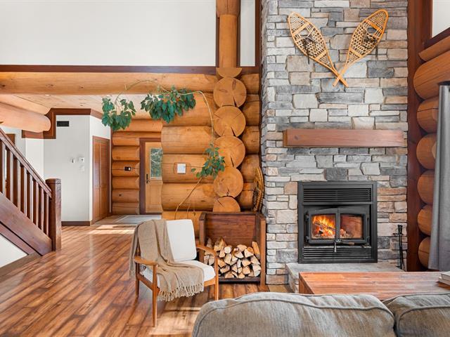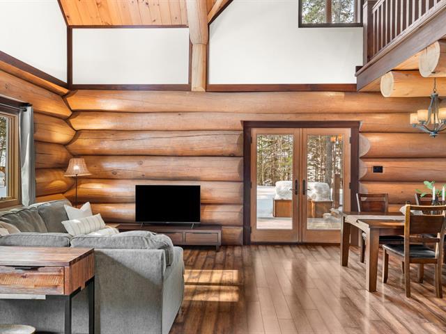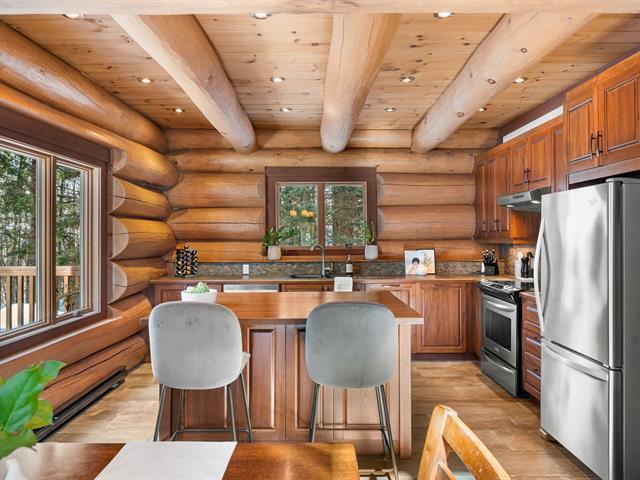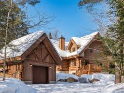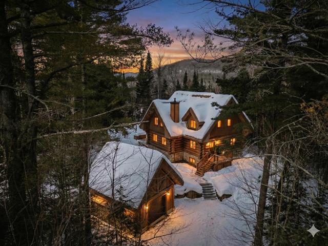RARETÉ SUR LE MARCHÉ ! Propriété d'exception scandinave en bois rond massif aux billots hors norme (18-20 po diamètre) construit par un spécialiste du bois massif. Terrain plat au sommet de Sainte-Adèle, entouré d'une forêt de pins blancs centenaires sur rue sans issue. Salon avec plafond cathédrale de 25 pieds baigné de lumière, foyer au bois, suite principale digne des plus belles revues, avec salle de bain attenante et walk-in. Garage détaché avec atelier et deuxième niveau, offrant un espace polyvalent exceptionnel. Présentée dans La Presse, cette demeure rare offre un cadre de vie prestigieux au coeur des Laurentides. Faites vite! (42833796)