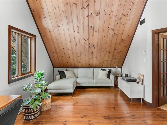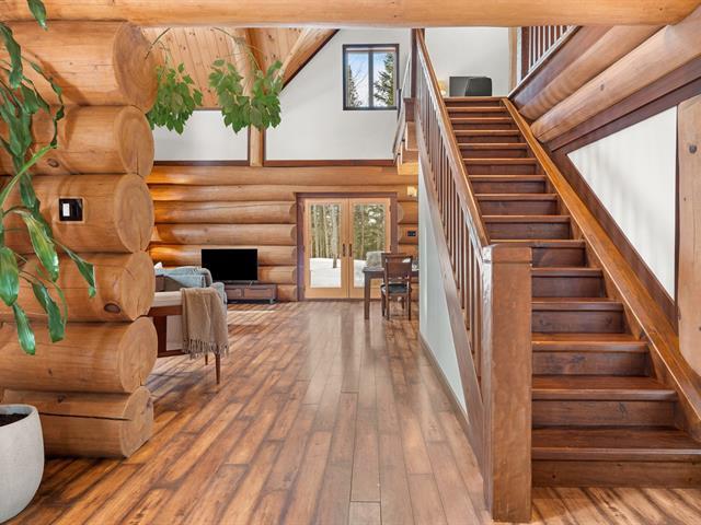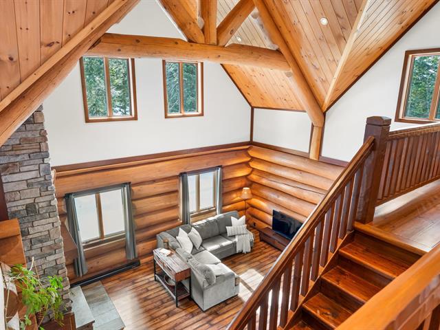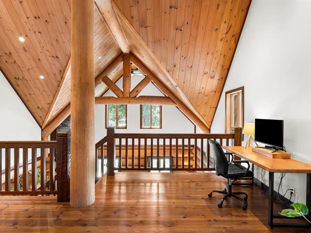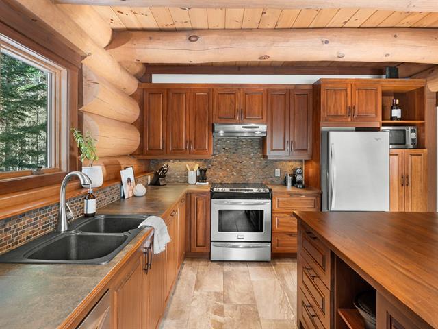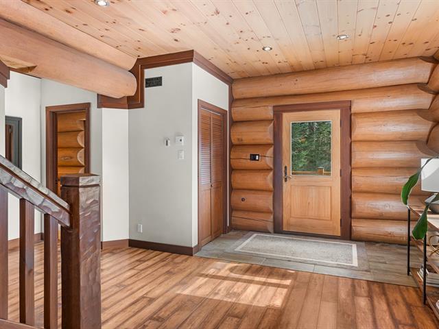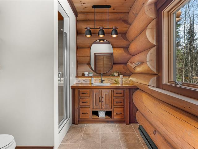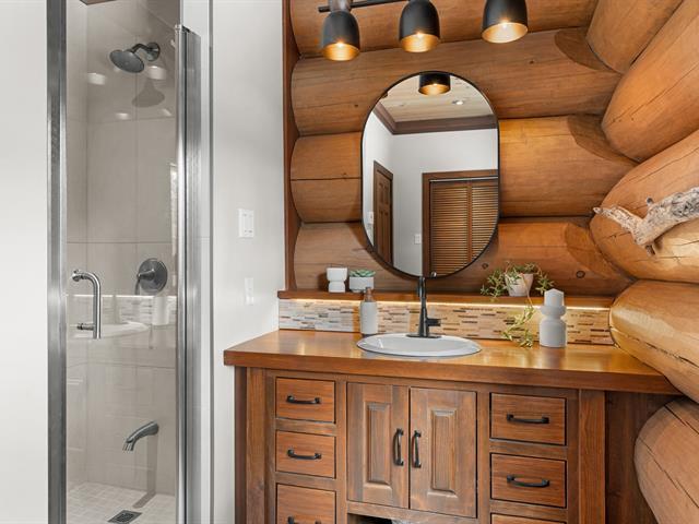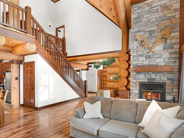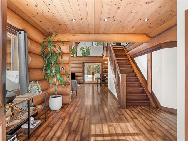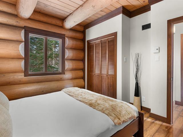 RARETÉ SUR LE MARCHÉ ! Propriété d'exception scandinave en bois rond massif aux billots hors norme (18-20 po diamètre) construit par un spécialiste du bois massif. Terrain plat au sommet de Sainte-Adèle, entouré d'une forêt de pins blancs centenaires sur rue sans issue. Salon avec plafond cathédrale de 25 pieds baigné de lumière, foyer au bois, suite principale digne des plus belles revues, avec salle de bain attenante et walk-in. Garage détaché avec atelier et deuxième niveau, offrant un espace polyvalent exceptionnel. Présentée dans La Presse, cette demeure rare offre un cadre de vie prestigieux au coeur des Laurentides. Faites vite! (42833796)