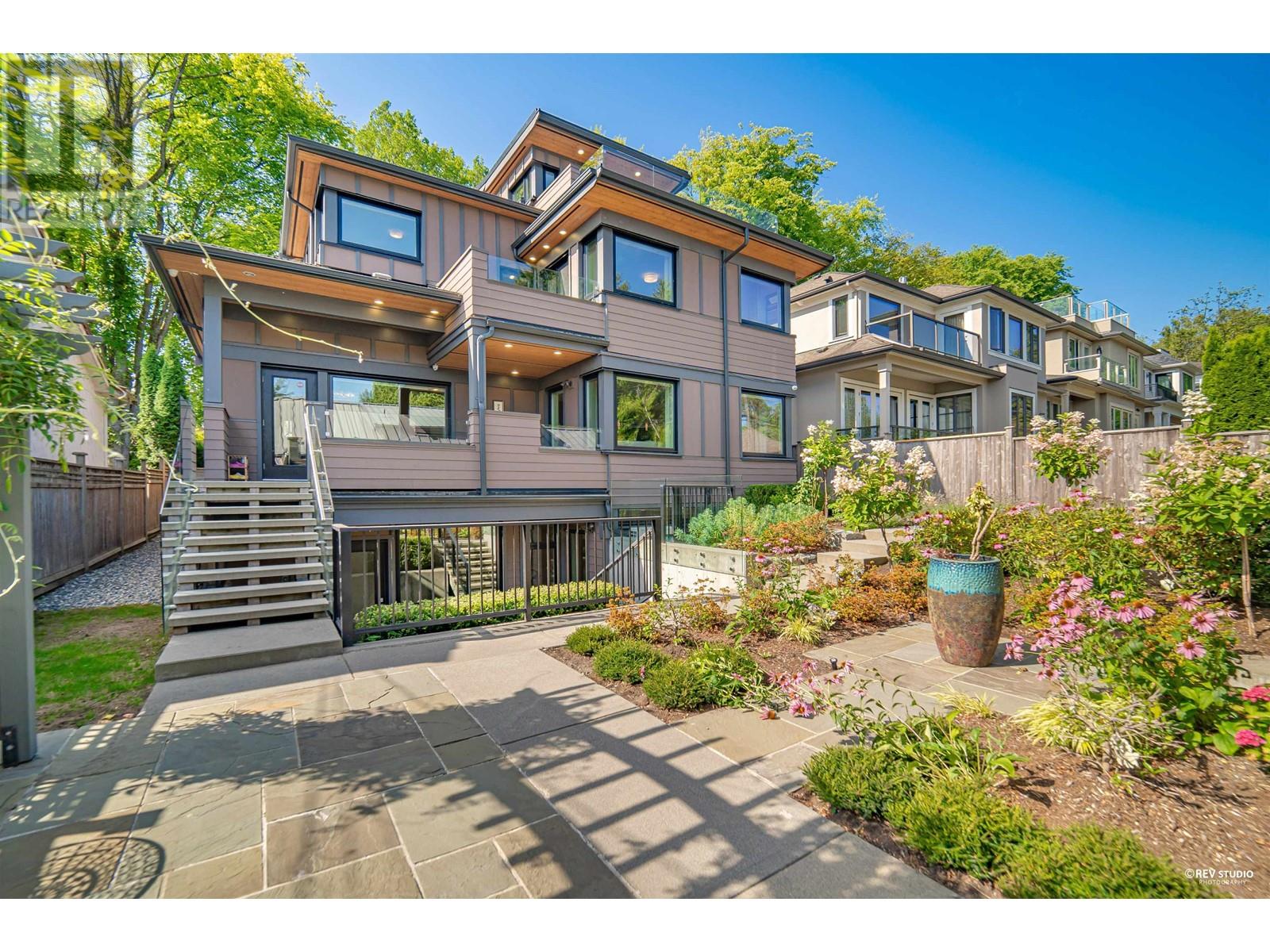 This environment-friendly home in Point Grey, built by a reputable local builder in 2013, meets the R-2000 standard, emphasizing energy efficiency, clean air features, and environmental protection. The unique split-level design optimizes space, light, and privacy. The home includes Miele appliances, a flexible kitchen design, a high-ceiling dining area, and a cozy family room, etc. A high-quality two-story laneway house with 2 bedrooms adds more versatility. The location offers proximity to several best public and private schools, shops, and amenities on Dunbar and West 10th Ave. (30284602)