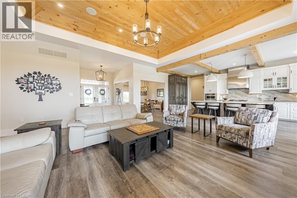 Welcome to your dream estate! This custom-built bungalow offers over 5,500 sq ft of luxurious living space, set on 43 acres of picturesque land. The meticulously designed home boasts three distinct living spaces, perfect for intergenerational living or hosting guests. The main floor features an open concept layout with a high-end kitchen flowing into the great room. A natural gas double-sided fireplace enhances the living room and outdoor balcony, that overlooks the heated saltwater pool. Four generously sized bedrooms include a primary suite with a 5-piece ensuite and walk-in closet, plus three more bedrooms, one with a 3-piece ensuite and two sharing a Jack and Jill 5-piece bathroom. The upstairs loft offers a private escape with a kitchenette, bedroom, 3-piece bath, and separate entrance. The basement features a separate entrance as well, two bedrooms, 3-piece bath, kitchenette, and large living area. It also connects to a lower 4th garage with a 2-piece bathroom. Property highlights include a 50' x 84' barn, perfect hobby farm set-up and a 5,659 sq ft shop with offices and a spacious workshop. The shop includes two washrooms and a spacious loft for storage. This home offers many rare amenities and is a must-see. Contact us today for more details and don't miss out on the opportunity to own this one-of-a-kind property! Additional features available in supplements. (31629162)