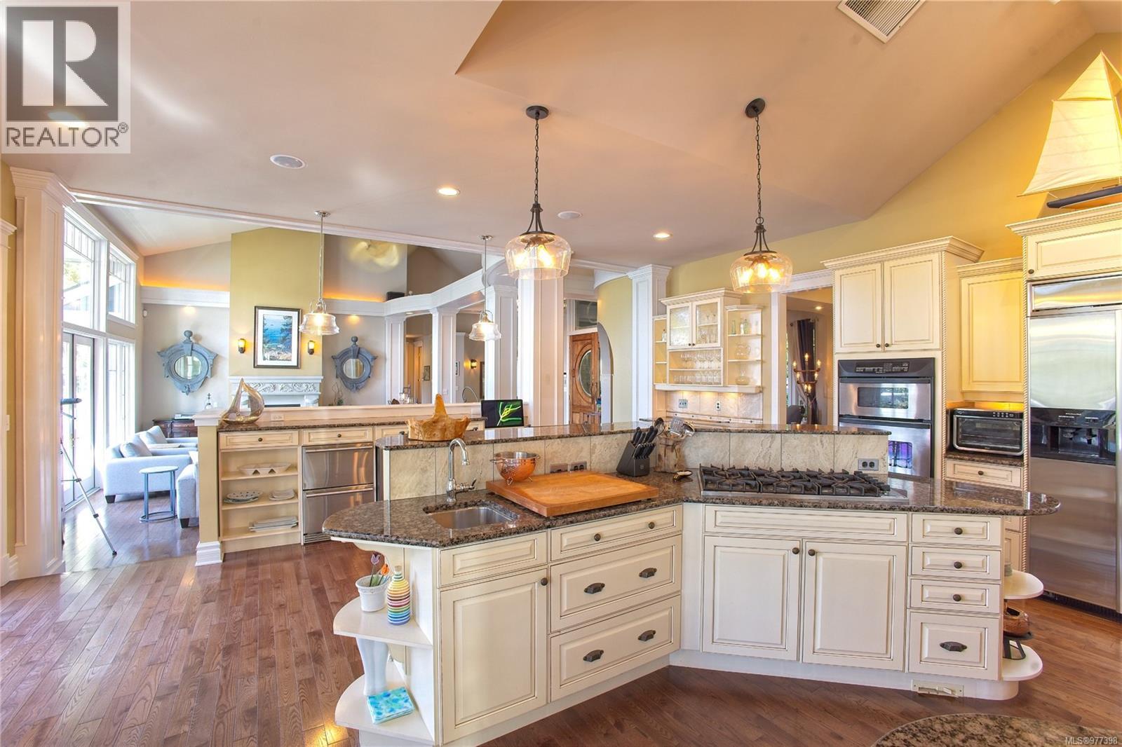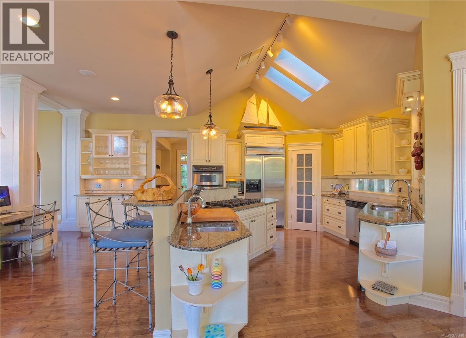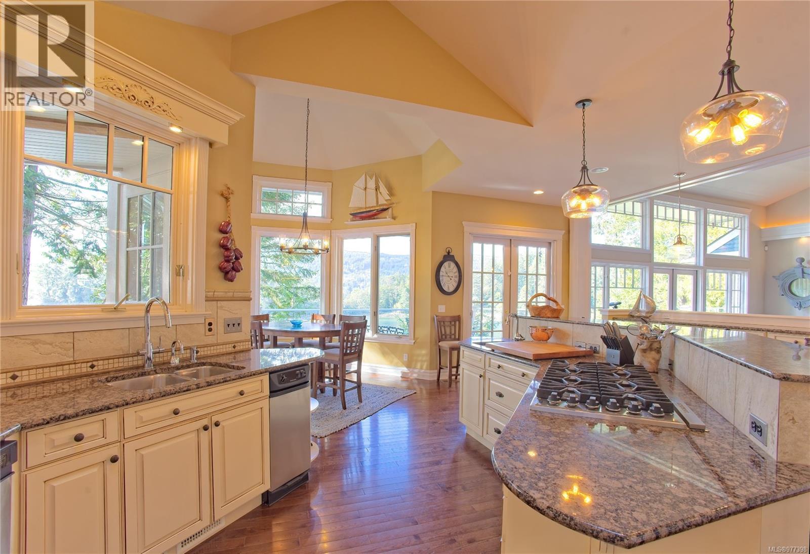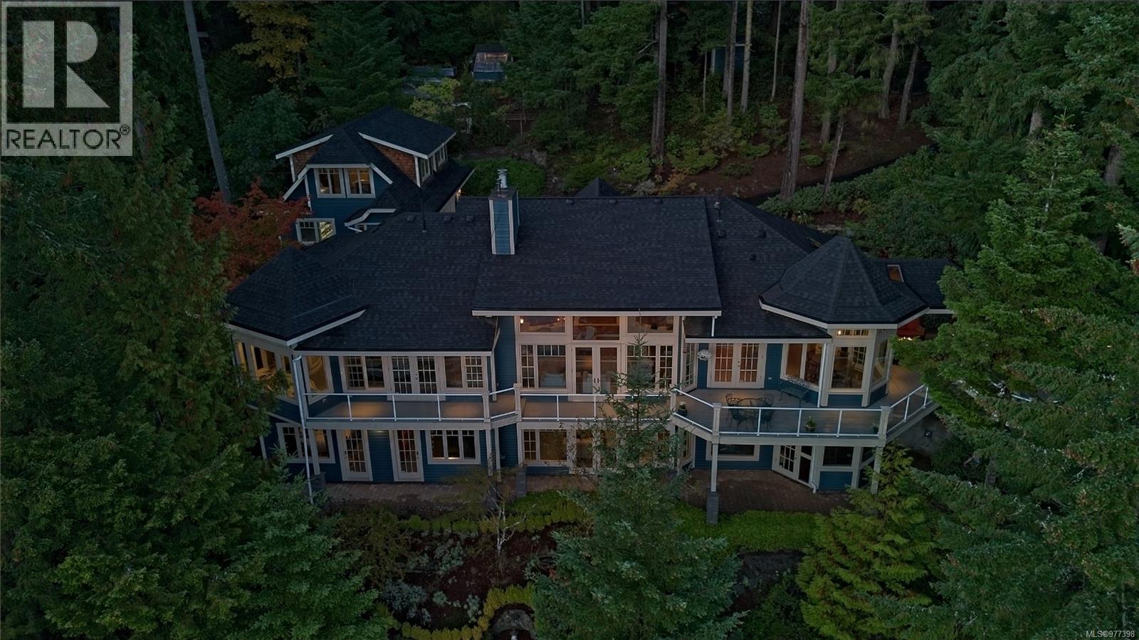 The easy rhythm of fine design welcomes from the garden gate at this exceptional oceanfront estate. Classic coastal elegance and meticulous modern design principles incorporate a wealth of fine appointments throughout an energetic floor plan. By dividing approximately 5200'sq.ft. over three distinctly private levels, the house itself provides a journey within its walls. Soaring ceilings. Banks of waterside windows. Media / games room. Cozy den. Oceanview gym. Separate offices. Four fireplaces. Private guest suite. Ample garaging. Detached 750' workshop. Beautifully developed 1.82 acre grounds feature professionally choreographed gardens, courtyard loggia, spa, extensive artisan stonework, illuminated pathways and gentle staircase to beach and boat. Exceptional moorage has comfortably accommodated 60' craft all the year round. This timeless estate could easily become the place you would rather be than anywhere else! (28457103)