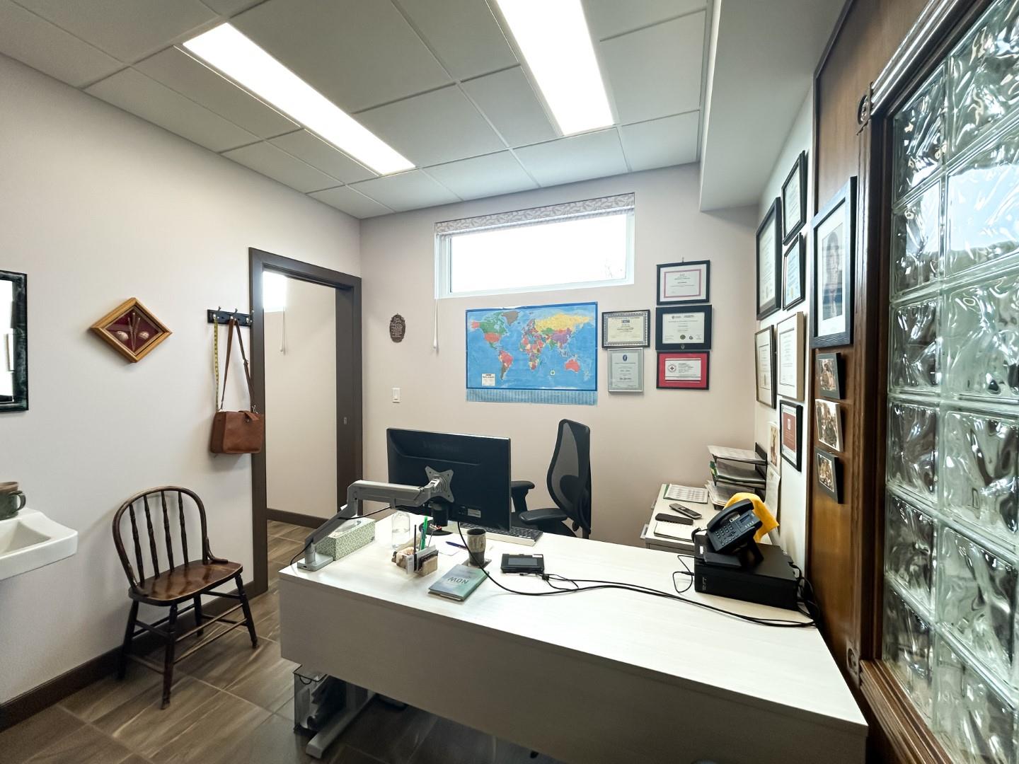 Fully finished commercial space, ideal for professional services, office or retail. Features high quality finishes, an appealing storefront, and a great downtown location! The current floorplan consists of a front retail/reception area, 6 offices, 2-2pc washrooms and storage area. The existing built-in cabinets and shelving are available to be included in the lease. Contact your Realtor to discuss this great move-in ready opportunity for your business! Estimated CAM: $5.87/sq ft – includes property taxes, building insurance, water and management. (67213350333418745)