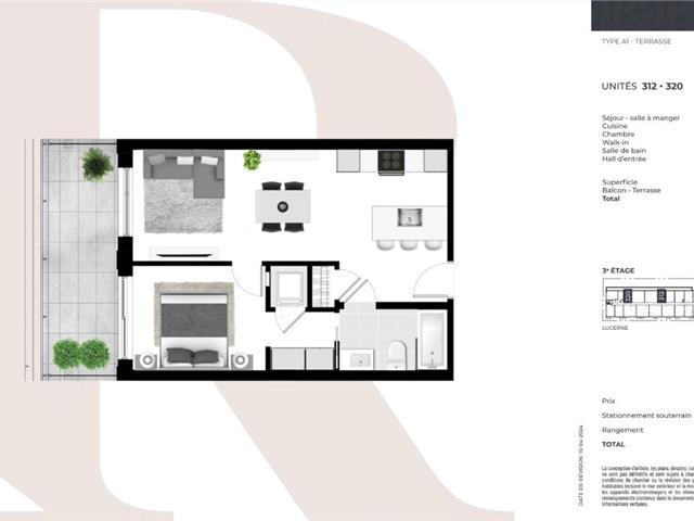 Expected delivery: Spring 2025 **Superb 1 bedroom unit with a spacious walk-in and ensuite bathroom. Big balcony of 137sf. The building includes an indoor swimming pool on the garden level, a gym and a common roof terrace with furniture and BBQ. Several other units available. GST/QST must be added to the asking price (48258126)
