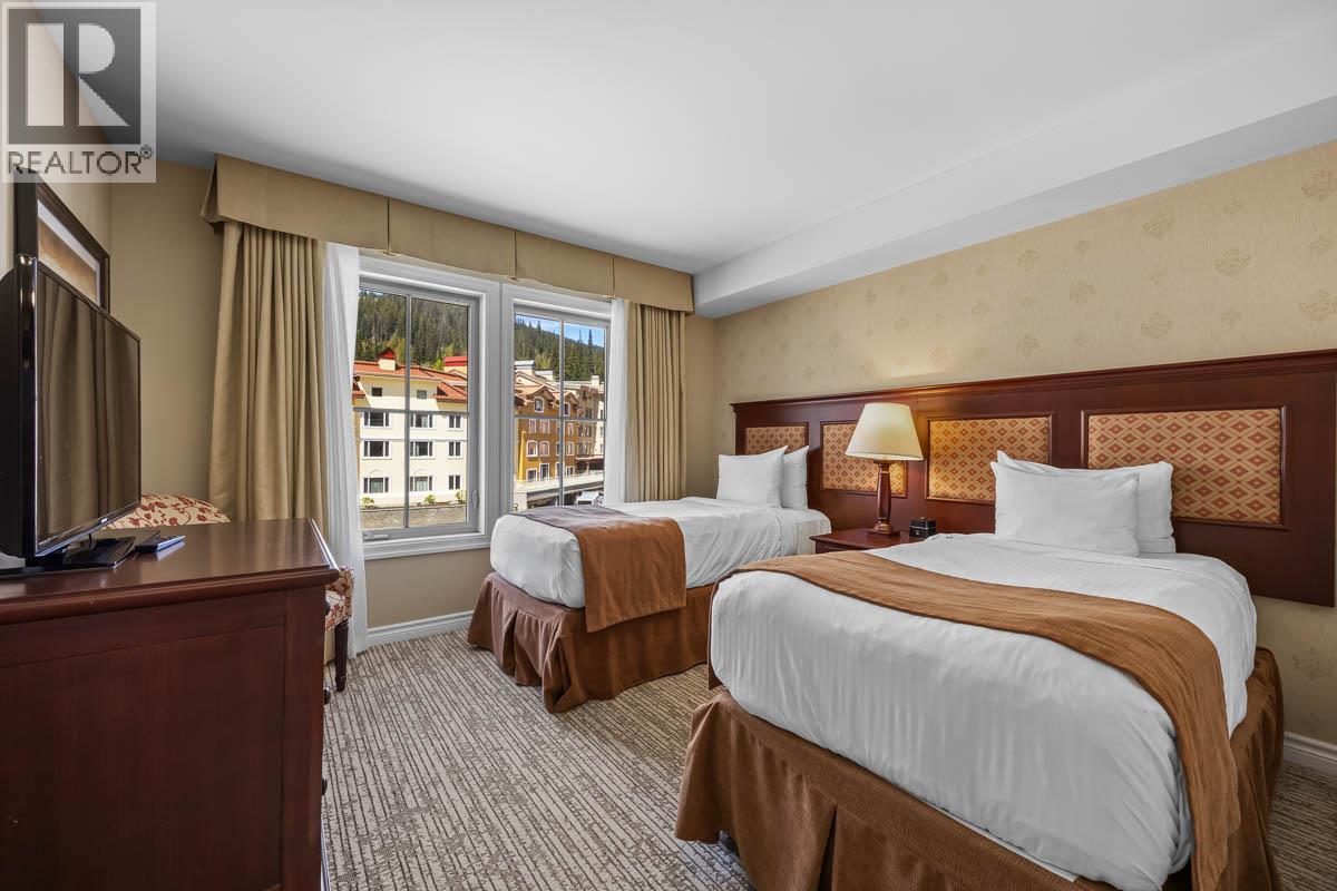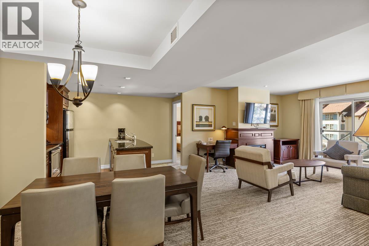 Quarter Ownership in this luxury two-bedroom suite in The Residences at The Sun Peaks Grand Hotel and Conference Centre. This luxurious, fully furnished apartment provides you with true ski-in, ski-out convenience in a central location in the heart of the village, with amenities such as a slopeside swimming pool, hot tubs, gym, sauna, restaurants, ski & bike valet, room service, heated underground parking and more. Perfect for extended stays, this vacation home includes a full kitchen with granite countertops and stainless-steel appliances, spacious dining/living area that opens onto a private deck with mountain views.  Features two sumptuous bathrooms with soaker tub and separate shower, central air conditioning, private in room laundry and plenty of closet space. Professional in-house property management team is in place for revenue opportunities when you are not there. GST applicable. (38266556)