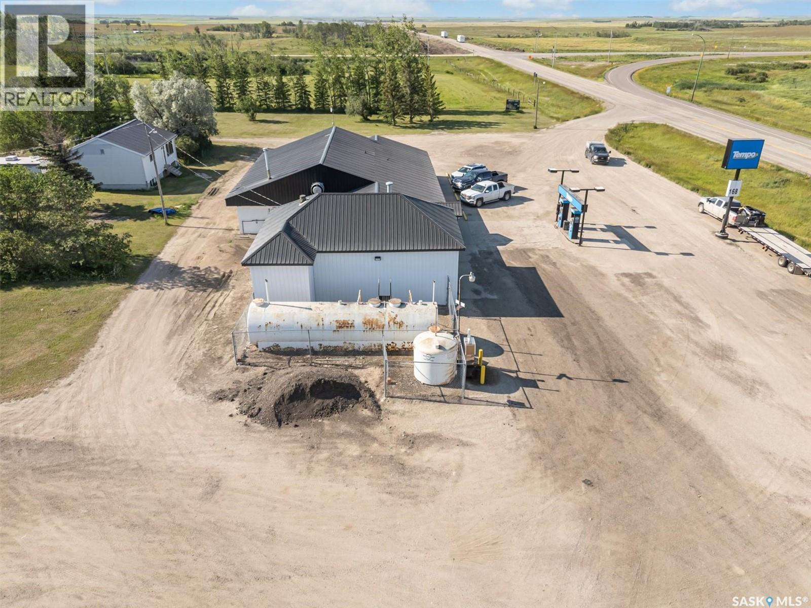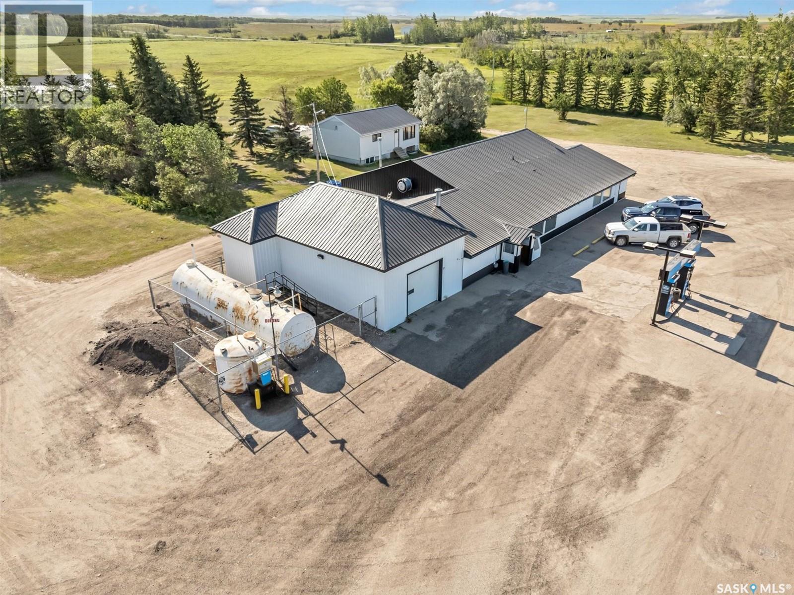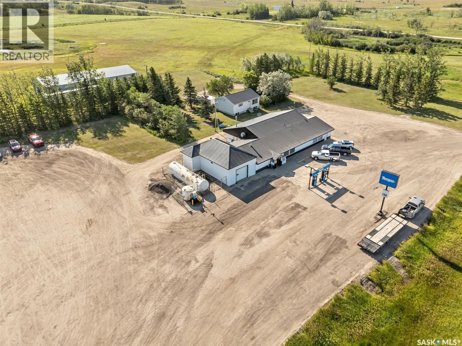 Don’t miss out on this rare business opportunity that combines a well-established restaurant with a Tempo gas station, offering a unique blend of income streams with on-site living quarters or employee accommodations. Located at the intersection of Highway 2 and 5, just 65km from Saskatoon and along a commute route to the upcoming BHP Jansen mine, this property boasts high visibility and a steady stream of customers. The restaurant has cultivated a loyal following for its quality food & friendly service. Combine that with the convenience of a gas station, this business proves to be a profitable venture. The expansive 24-acre property, which includes 4 acres zoned commercial and another 20 acres zoned agriculture, provides potential for additional development. This property also features an 864 sq ft bungalow - a great opportunity to reside near your business or provide accommodations for staff. The house features 2 bedrooms, a 4-piece bathroom on the main floor, two more rooms, and an additional bathroom in the basement. A large 50' X 100' shop provides ample storage space and further enhances the property's value. Don't miss this rare chance to own a multifaceted business in a prime location with significant growth potential. (28965292)