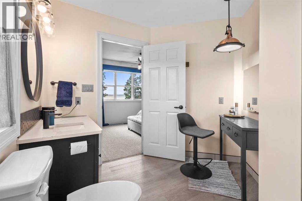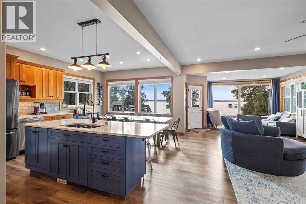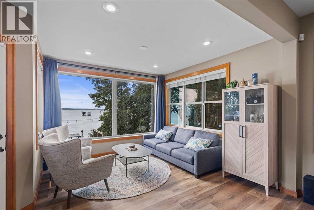 50 Feet of sandy lakefront on the shores of Jarvis Bay. Enjoy breathtaking sunsets, fishing, boating, swimming, snowmobiling, quadding, and make the family memories unforgettable! This Bowood built home has had many updates and it shows! Bright open great room with large windows, wood fireplace(wett certified), expansive island with quartz tops, durable high quality plank flooring, high ceilings, main floor laundry, and a great deck for catching some rays. Upstairs has 4 bedrooms and 2 baths providing room for family and guests. Fully finished basement has acid stained concrete floors with slab heating, another bedroom, a den and an oversized rec/games room. Raspberries and Saskatoons are abundant on this property! Also just a short 10 minute bike ride on paved paths or a nice walk into all the amenities of Sylvan Lake! Don't wait too long to view this beautiful lakefront home! This home has been pre inspected and that is available to any buyer. Wood fireplace has been WETT inspected. (30221689)