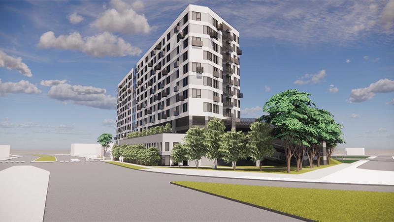 New main-floor retail space situated beneath a 224-unit apartment building