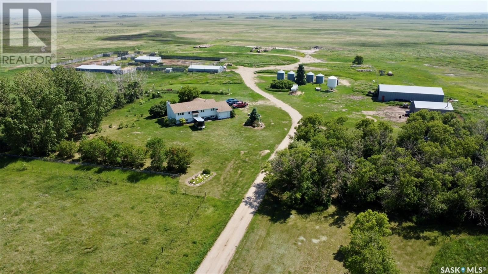 This prime ranching operation, located south of Jansen, SK, includes 27 quarters of land—22 deeded quarters (3,462 acres) and 5 leased quarters (793 acres). The deeded land consists of 230 acres of cropland, 585 acres of tame grass, and the remainder in native pasture and wetlands. The leased land is primarily native pasture. 14 quarters are fenced with 4-strand barbed wire and some cross-fencing. In 2024, most grazing land was left untouched, with only the recently seeded hayland baled. Water sources include multiple wells as well as five dugouts and natural springs. The ranch comfortably supported 180-320 cow/calf pairs in past years. Infrastructure includes four 1,650-bushel bins, one 2,000-bushel bin, and a fertilizer bin. Key outbuildings include a 32’x40’ heated and insulated shop, a 40’x80’ shed, a 32’x64’ calving barn with power and water, two open-front cattle shelters, and a corral system with seven pens, a Hi-Qual crowding tub, S-alley, and squeeze chute. The 1,730 sq. ft. bi-level home (1987) has a developed basement, three bedrooms plus one down, three bathrooms, a four-season sunroom, wood-burning fireplace in the living room, and a wood stove in the basement. Recent upgrades include central air (2022), newer triple-pane windows, and a forced-air oil furnace. The home also features a 14’x34’ attached garage and includes all appliances. Offering excellent grazing potential, solid infrastructure, and a well-kept home. (29044103)