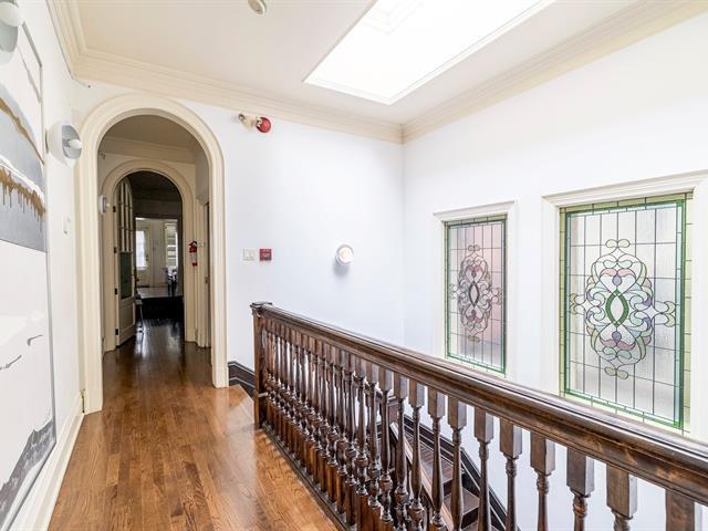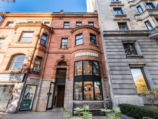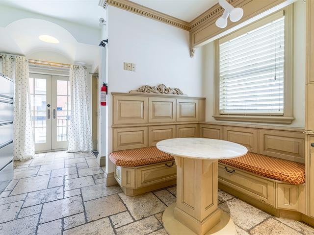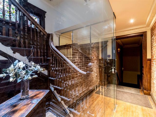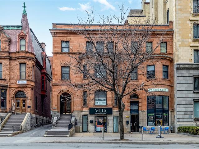 A rare opportunity to live in a two-level townhouse in the heart of the Golden Square Mile, where luxury, convenience, and style come together seamlessly. This historic building boasts soaring ceilings, intricate woodwork, and generously sized rooms, creating an atmosphere of elegance and grandeur. The spacious living room offers the perfect setting for professionals to both reside in comfort and entertain clients in style. (49058902)