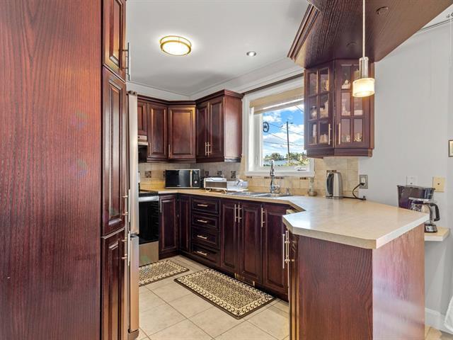 Sought-After Location in Saint-Hubert! This stunning turnkey semi-detached property, is situated in a quiet neighbourhood. It features 4 spacious bedrooms, including one in the basement, a meticulously maintained oak kitchen, and a large fenced yard. The fully finished basement includes a full bathroom and newly renovated wooden stairs. Enjoy hardwood floors throughout both levels. A visit is essential to experience all the exceptional features of this property! (45098177)