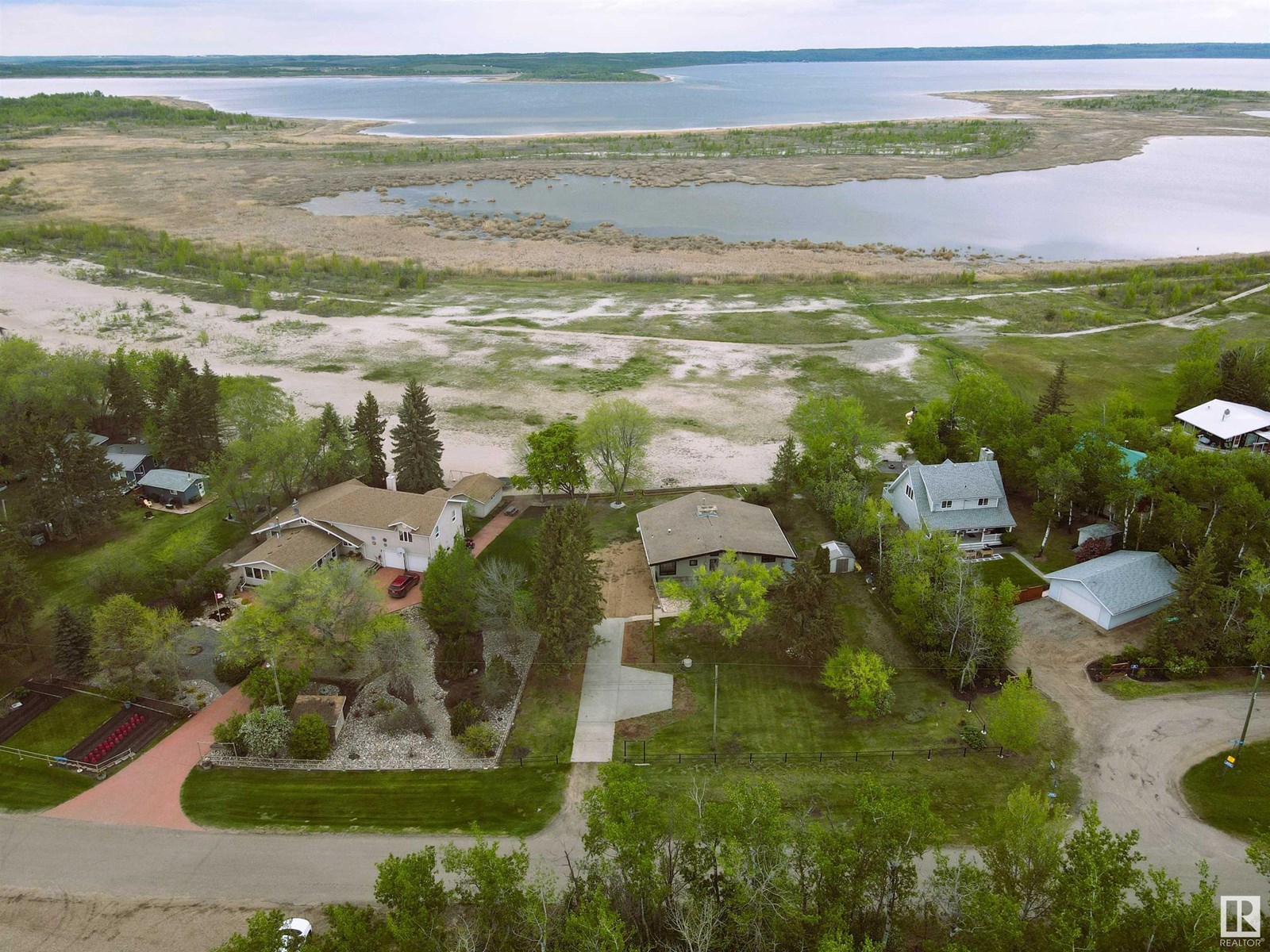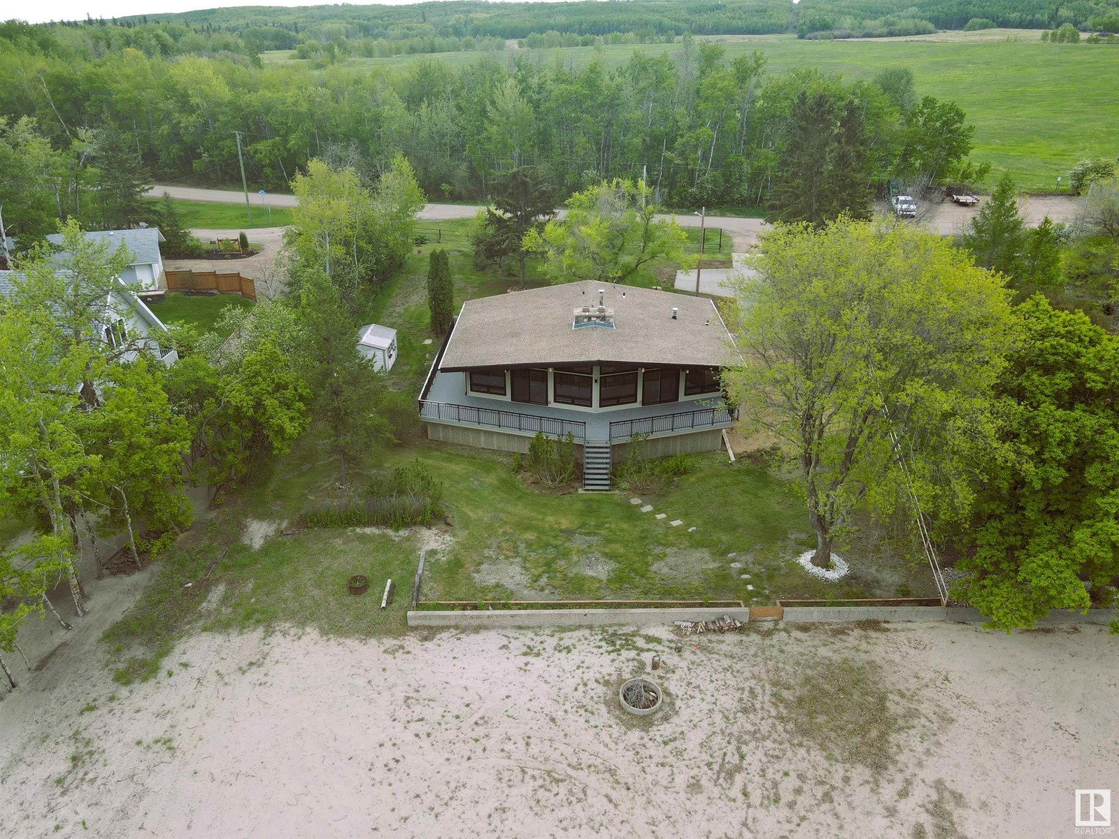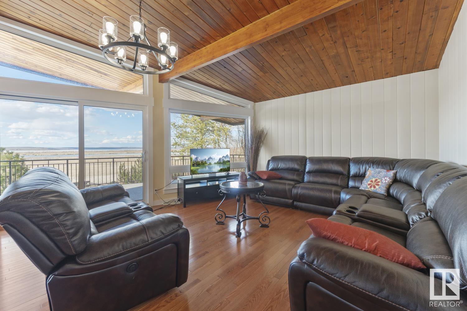 Custom built 1728 sq. ft. bungalow sitting on just over 1/2 an acre Lakefront Muriel Lake. This year round home has 3 bedrooms 2 bathrooms an open concept A frame style, which enhances all views of the lake. Property upgrades include 2 new bathrooms, new triple pane windows, new siding, new deck, fresh paint, new electrical and more.....Relax and enjoy sights and sound of the lake on the huge wrap around deck or enjoy the sandy beach. (32596003)