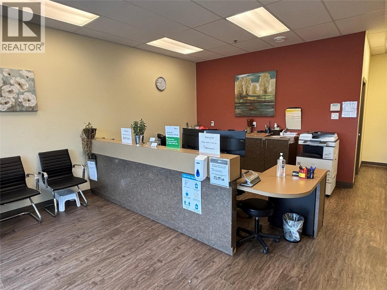 This 3,114 SF unit is available for SUBLEASE. Well appointed, turn-key space including a front reception area, 4 offices, 3 private patient rooms, kitchen/staff room, service room, laundry room, two bathrooms, and an open area at the rear of the unit (previously used as a gym/treatment space). Located along Baron Road, the property benefits from high visibility and steady vehicle traffic, making it an ideal location for businesses seeking strong exposure in one of Kelowna’s busiest commercial corridors. Neighboring tenants include Play It Again Sports, Beachcomber Home & Leisure, Once Upon A Child and Plato's Closet. Pylon signage included at a cost of $50 per month. The unit is available immediately with a sublease term until February 28, 2028. (38561448)