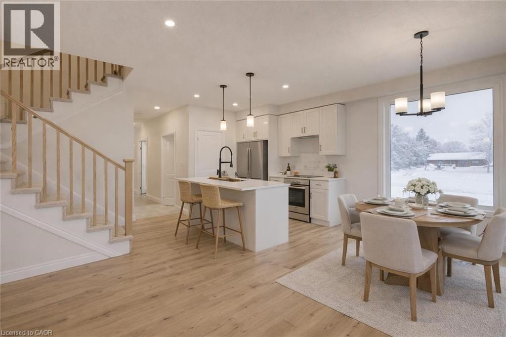 Welcome to The Town Collection at Maitland Meadows — The Homestead model is where modern farmhouse charm meets calm, connected living. This bright end unit offers 1,810 sq ft of thoughtfully designed space, filled with natural light and upscale finishes. With 9' ceilings and an open concept layout, the main floor feels airy and inviting — from the flexible front room (perfect for a home office or playroom) to the kitchen’s quartz island that anchors the dining and living areas. Upstairs, the spacious primary suite features a walk-in closet and private ensuite, while two additional bedrooms and second floor laundry make family life effortless. Energy efficient construction helps keep costs low and comfort high, and the full basement offers room to grow. Complete with a deck, appliances, and stylish finishes, this home is move-in ready, and if you're looking for that attached garage feature, it's here too! Designed for those who love the modern conveniences of new construction and the peaceful rhythm of small town life. For a full list of features and inclusions visit our Model Home located at 122 Bean Street in Harriston. (69028585)