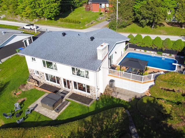 Dans un secteur boisé et paisible au coeur d'un sanctuaire d'oiseaux, cette superbe maison unifamiliale offre une vue spectaculaire sur le lac Champlain. Elle propose trois chambres au rez-de-chaussée, une grande salle à manger, une cuisine rénovée avec îlot central, et un salon à aire ouverte. Toutes les pièces communes sont baignées de lumière et orientées vers le lac. Un escalier à limon central mène à une vaste salle familiale au rez-de-jardin. En surplomb d'une falaise, la terrasse et la piscine creusée prolongent l'expérience en pleine nature. Accès notarié au lac, foyer, poêle, thermopompe centrale et abri d'auto complètent le tout. (40128822)