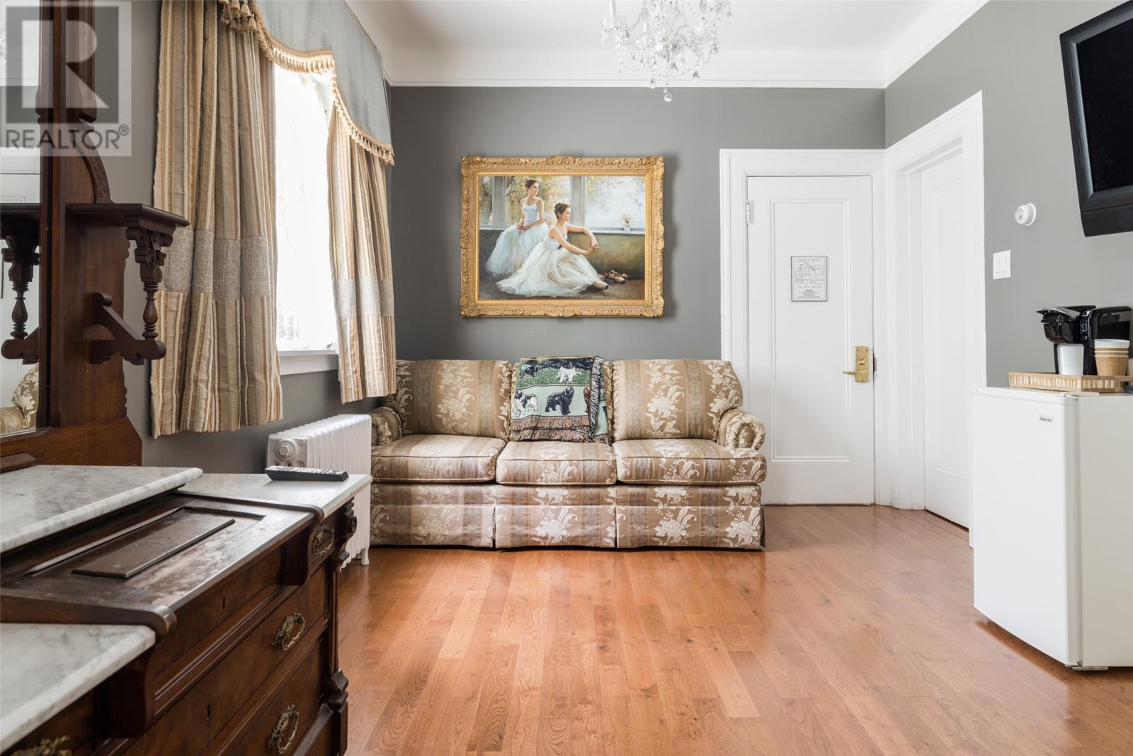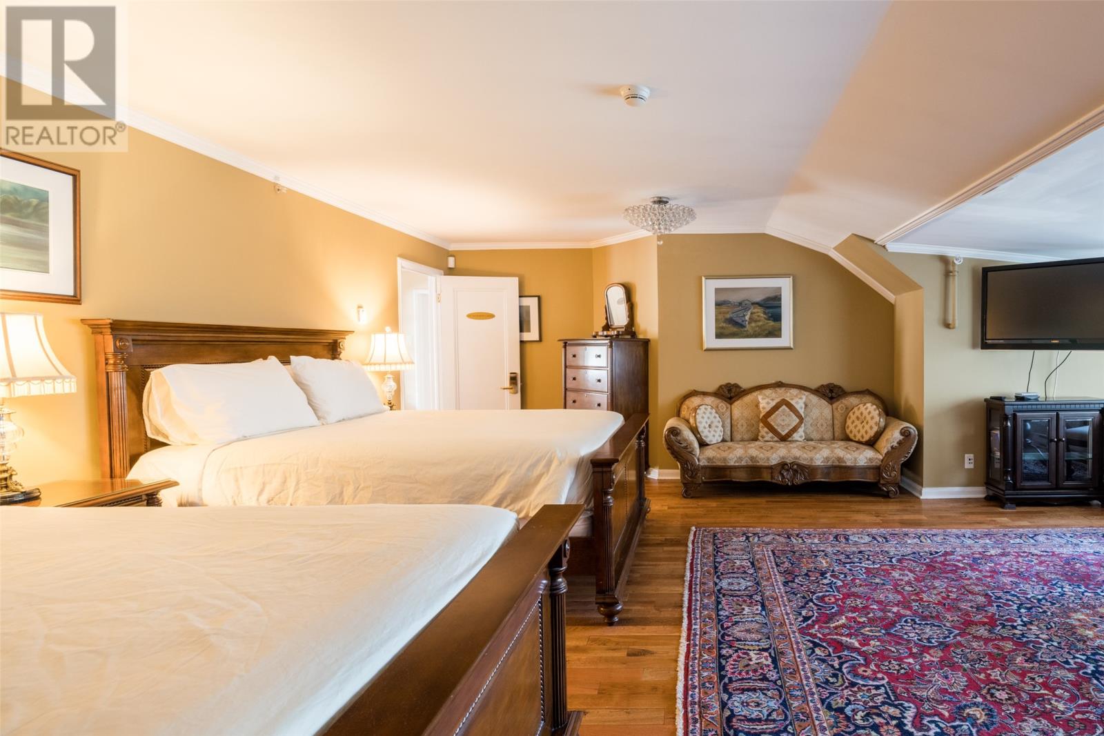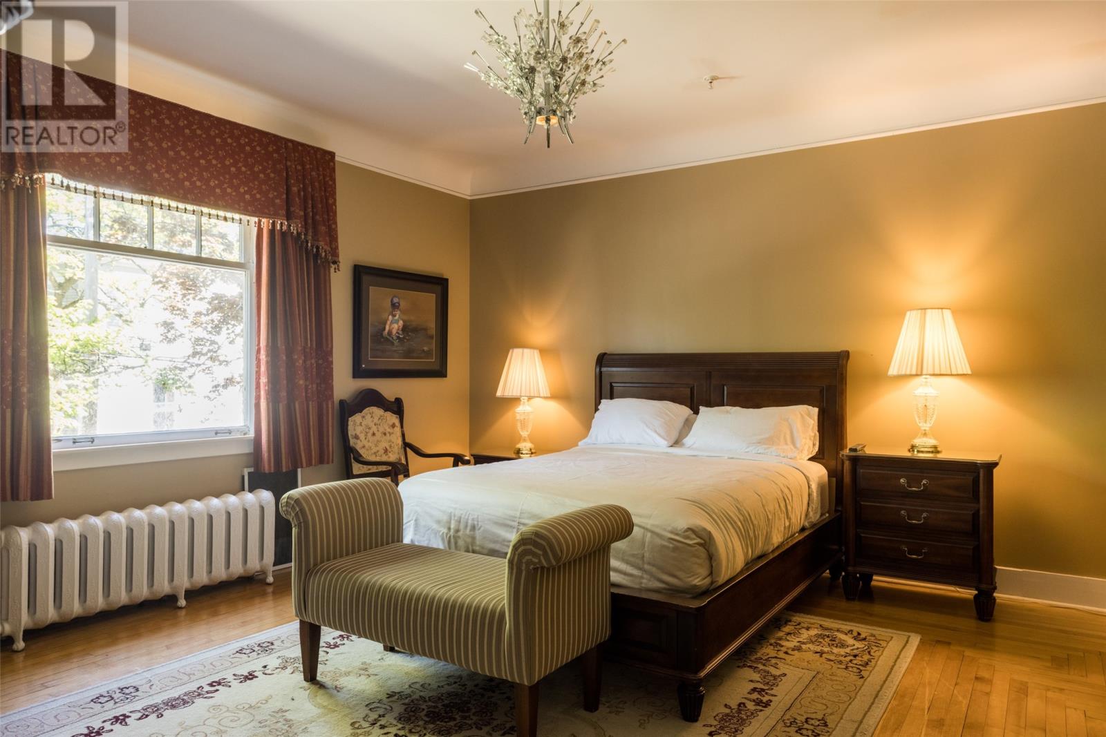 Unique historical home in downtown St. John's bordering on the Sheraton Hotel. This listing is the former home of Newfoundland's ninth Prime Minister, the Right Honourable Walter S. Monroe 1924-1928. Designated as a heritage home, this property features 8 bedrooms, each with their own ensuite. Some upgrades include: electrical, plumbing, asphalt roof shingles (2024), sprinkler and CO2 system, and exterior totally repainted (2025). This well maintained home has a 10-zone hot water radiation heating system. A commercial kitchen is located on the main floor. This is an excellent property in one of St. John's finest neighbourhoods. Measurements are approximate; Purchaser to verify. Walking distance to everything downtown. (29746141)