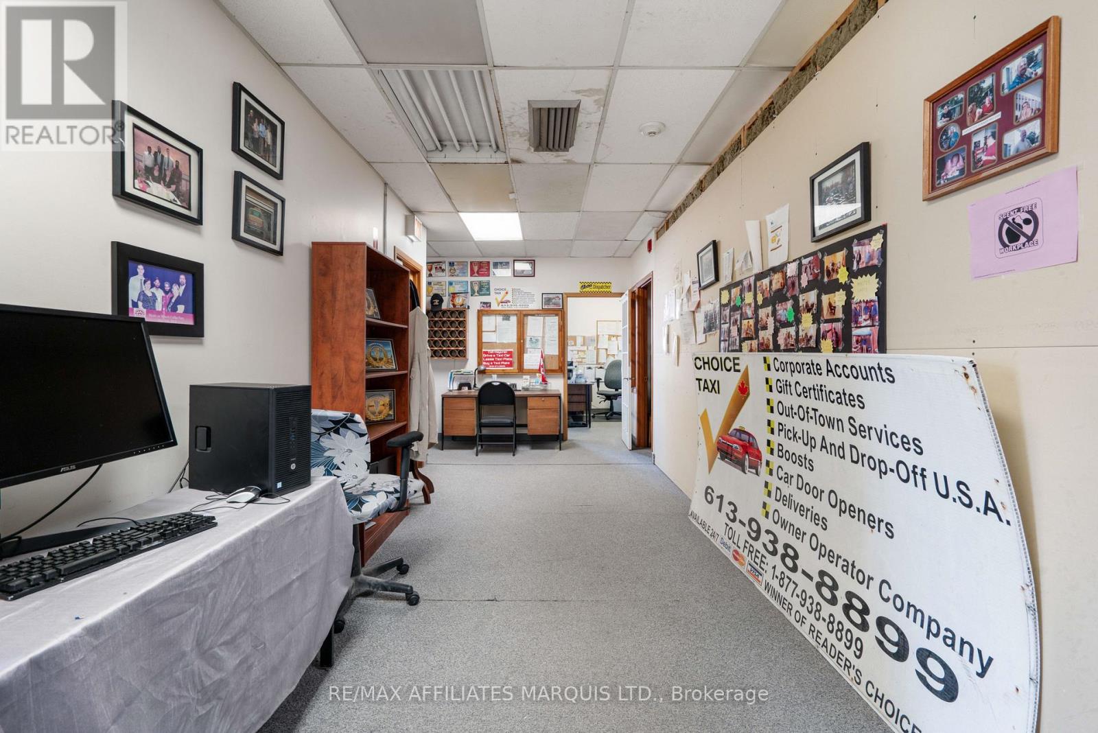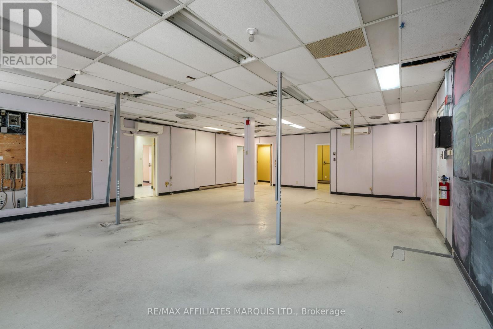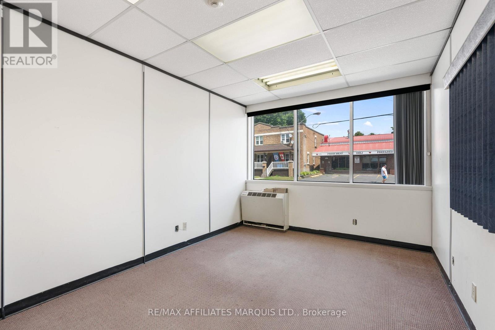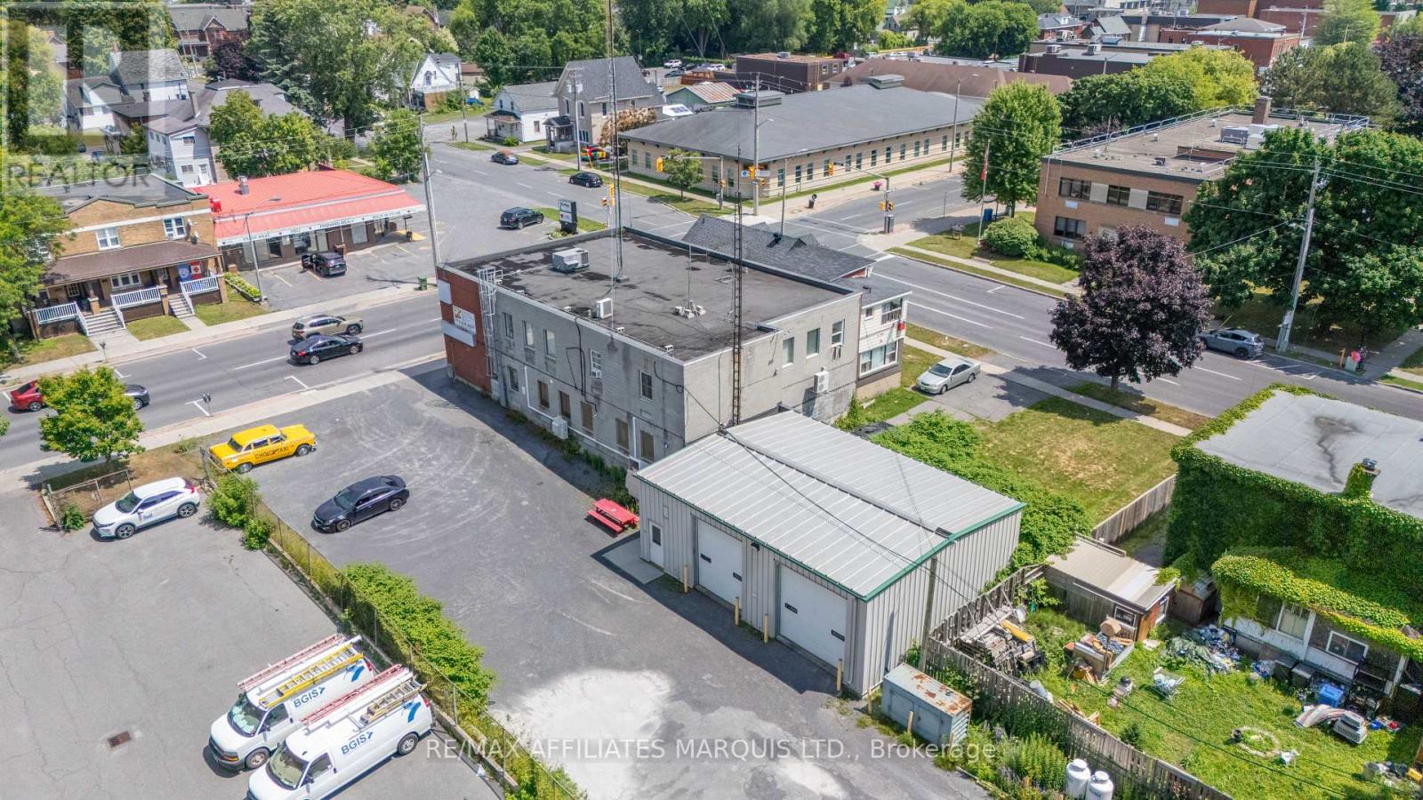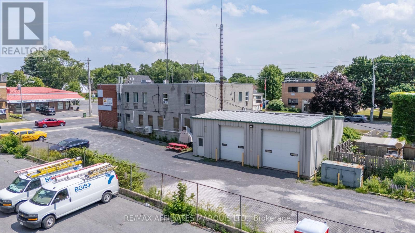 For Lease Main floor $15.00 per sq ft per annum, second Floor $10.00 per sq ft per annum, Garage $1,500.00 per month. All Rents are for the first year of a 5 year minimum lease on an "As Is"basis, Rents will change annually by the change in Operating Costs for the year. There may be a change in the Base Rent part way throught the Lease. The subject property consists of a 0.39 acre parcel of serviced land, with approximately 98 ft. of frontage on the west side of Pitt St. by a depth of approximately 177.7 ft of depth. The lot is slightly irregular in shape. There is a graveled parking lot with some 17 parking spaces beside the building. The site is fully serviced with municipal water and sanitary sewer, electrical, communications and other typical services. Surface drainage on the lot is to the West. No environmental issues were identified, and the assumption is the site is environmentally clean. The site has been improved with a two-story office building having approximately 3,725 sq ft of area on the first floor and approximately 3,525 on the second floor. In addition to the main building there is an attached commercial two bay 1,376 sq ft metal garage located behind the office building. The main building is complete with two, two piece washrooms on each floor. It is understood that a new fully ducted HVAC system was installed several years ago replacing individual units that are now blocked off. The hydro service is assumed to be approximately a 400 amp, three phase, 600 volt electrical service with separate pony panels located in various parts of the building. It is understood the roof on the main building was replaced in 2021. There is a standby generator on site, but it is not known if it is operable or not. The building interior improvements are considered to be out of date relative to most office buildings today and are in need of modernization. The garage is thought to be in very good condition. Tenants are cautioned to verify all details. (40706657)