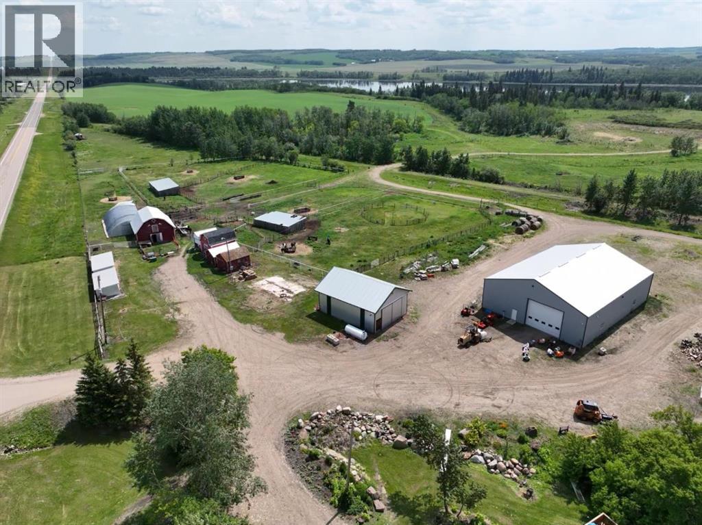 Here is a package of land, house, shop, and corrals that has it all. The owners have taken no short cuts but have gone above and beyond in everything they've done. For Example: The roof was redone 2 years ago, a new septic tank recently, a new well 2 years ago producing 25 gallons per minute of beautiful waters. Edmonton water line is on the property if someone wanted to hook up. The house features 4 bathrooms and 5 bedrooms, a special fire place and a wood burning stove in the basement. A large hot tub and gazebo off the new patio doors from the primary bedroom on a large wrap around deck. house is extremely well insulated with 2" Styrofoam. Outside you will find 3 large garden areas, plus fruit trees, and even a zipline for some extra fun. A special shop 60x80 with R60 insulation & 3/4 plywood on the walls, tinned inside and out, a floor drain and 16x20 foot door at each end, heated with two long radiant heaters. Yard also features a 30x40 storage building with sliding doors and tin roof and walls, also has a hip roof barn 32x28. There are three dugouts and a spring on this 1/4 section. Ideal for trout stocking. This is just some of the extras built into this dream property. Must be seen to really appreciate what is being offered here. Many options from hobby farming to industrial or a combination of many ideas. Call today to book your viewing. (30727750)