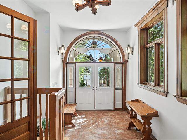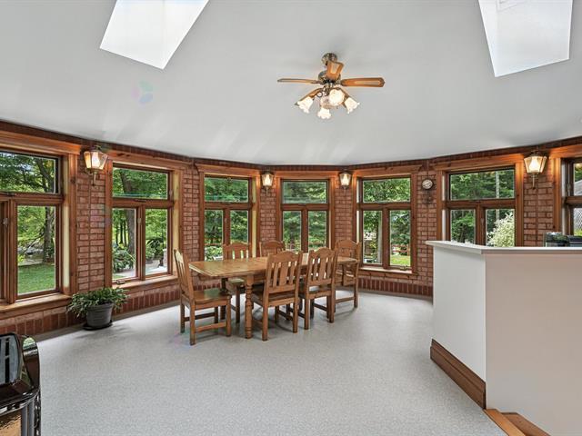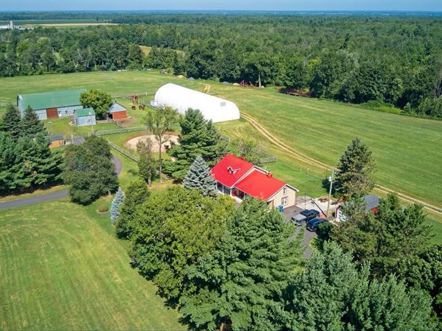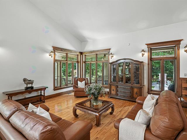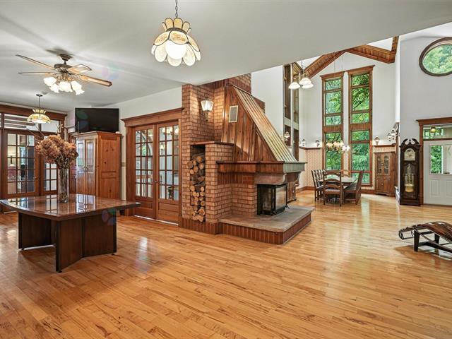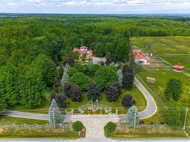 THE PRESTIGIOUS DOMAINE LEGLER, built in 1992, embodies timeless elegance. Set on approx 140 acres of peaceful countryside, the beautiful Hinchinbrooke River meanders through dense forest. The estate includes more than 10 km of wide, private walking trails. Its sumptuous main home, built with noble materials, boasts soaring ceilings, bathed in natural light, with an open-concept living and dining room. The crowning jewel; a large indoor swimming pool invites you to relax all year round. 2 additional fully independent homes, multiple stables, garages and paddocks complete this exceptional estate, ideal for animal lovers and outdoor enthusiasts (49094721)