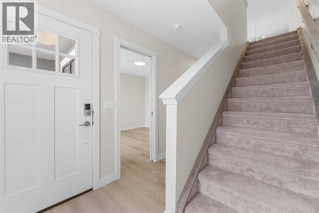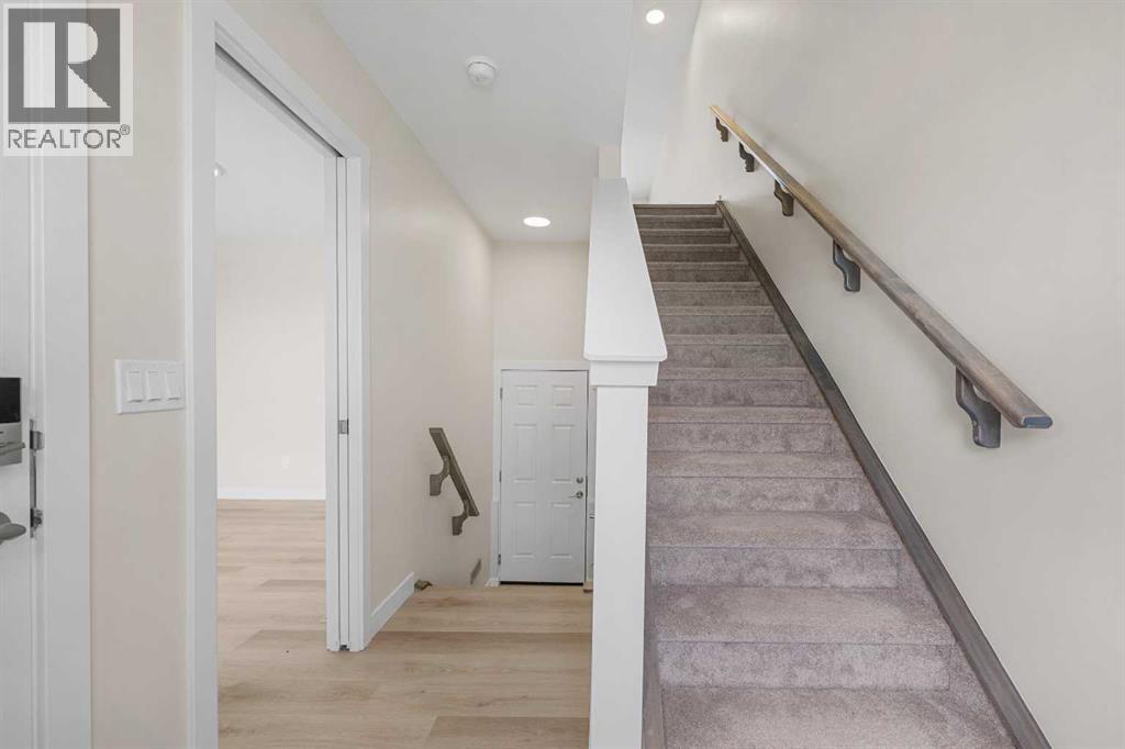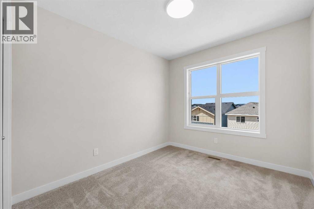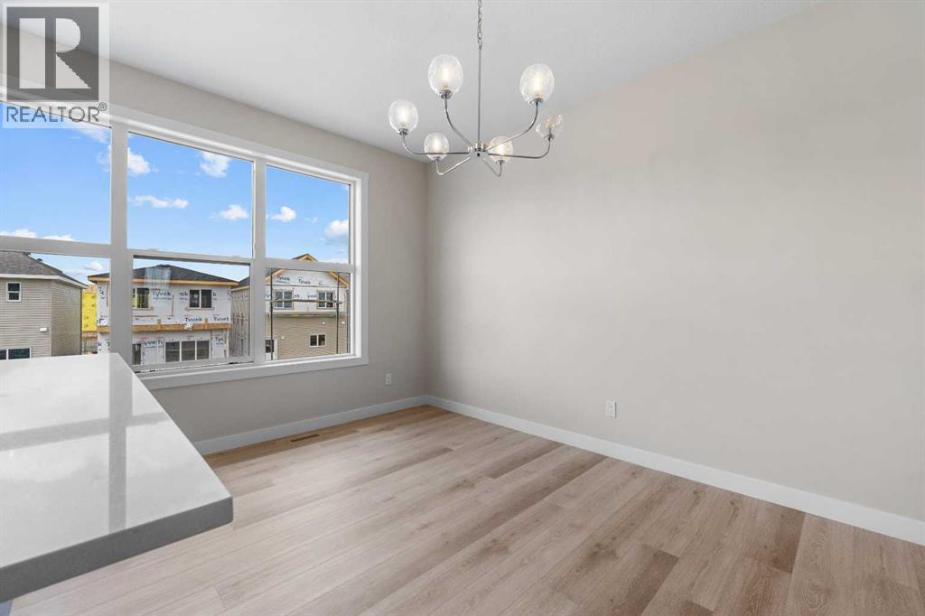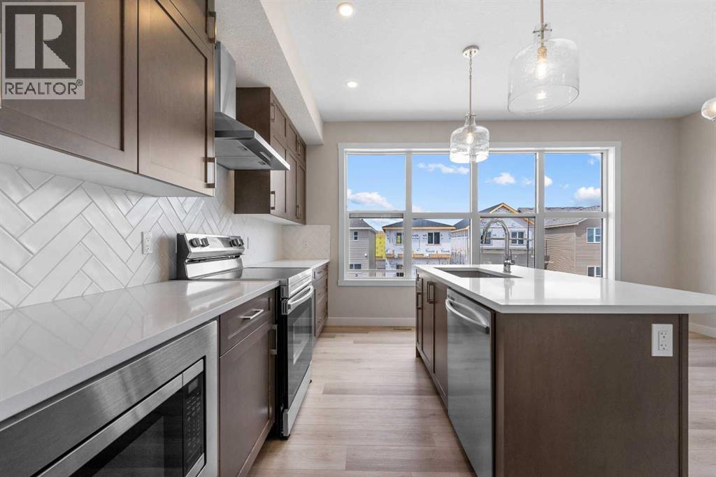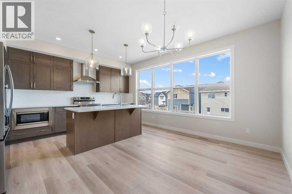 ** Brand New No Condo Fee Townhome Built by Genesis Homes ** Theo Model | 3 Beds | 2.5 Baths | Double Attached Garage | Main Level Den/Office | Incredible Open Floor Plan | Top of the Line Finishes | Quartz Countertops | Designer Curated Backsplash | Full Height Cabinets | Builder Package Stainless Steel Appliances | Gas Line to Range | Walk-in Pantry | Wide Plank LVP Flooring | Sizeable Bedrooms | Upper Level Hall Laundry | Smart Automated Home | Balcony | BBQ Gas Line | Double Attached Garage | James Hardie Siding. This stunning Theo model by Genesis boasts 1,687 SqFt, 3 bedrooms, 2.5 bathrooms and a spacious open floor plan layout that’s perfect for families, professionals, or anyone who loves extra space. The front door opens to a main level foyer with closet space and a flex den. With large windows and high ceilings this space is space has the versatility to be an office space with a peaceful retreat for work or creativity. Head upstairs to the 2nd level to a grand floor plan both open and functional. The kitchen is outfitted with sparkling quartz countertops, ample cabinet storage, a gas line and a stainless steel builders appliance package. The centre island in the kitchen is equipped with a barstool seating area making it the perfect space to enjoy small meals and socialize while you cook. The walk-in pantry is a bonus to your dry good storage. The dining room paired with the kitchen makes for an easy stove to table transition. The spacious living room is the perfect area to unwind with your family in the evenings and is ideal for hosting guests. Just off the living room is a door to your private balcony with a gas BBQ line for those summer cook outs! The uppermost level is paired with 3 bedrooms, 2 full bathrooms and hall laundry. The primary bedroom is a personal retreat with a deep walk-in closet and private 4pc ensuite bath with a deep tub/shower combo. Bedrooms 2 & 3 share the main 4pc bath with a single vanity and tub/shower combo. The upper level lau ndry is a treat as its located near all the bedrooms. The double attached garage secures you 2 year round secured parking and space for seasonal storage. Located just moments from essential amenities and nestled close to a picturesque park, you’ll enjoy easy access to shops, dining, and outdoor activities. Take in breathtaking mountain views and sunsets as you stroll by the serene pond. Hurry and book your showing at this gorgeous Genesis home today! (30812047)